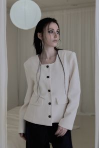 네크라인에는 핀코트 디테일로 포인트를 주었으며, 천연 자개 단추를 사용하여 고급스럽게 마무리하였습니다.