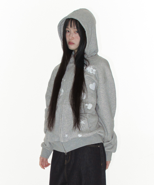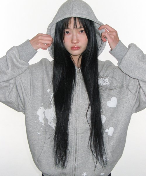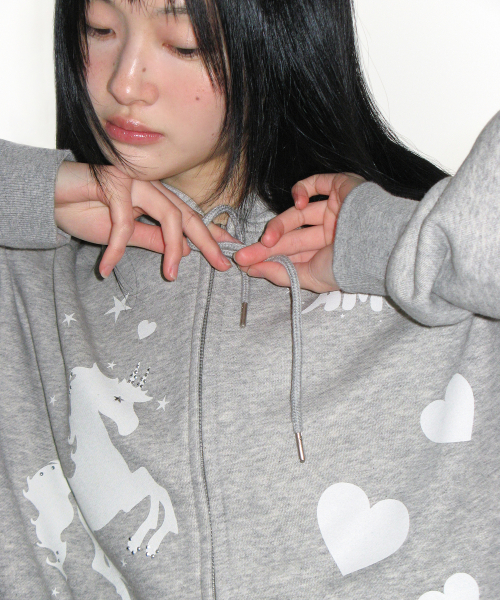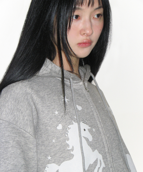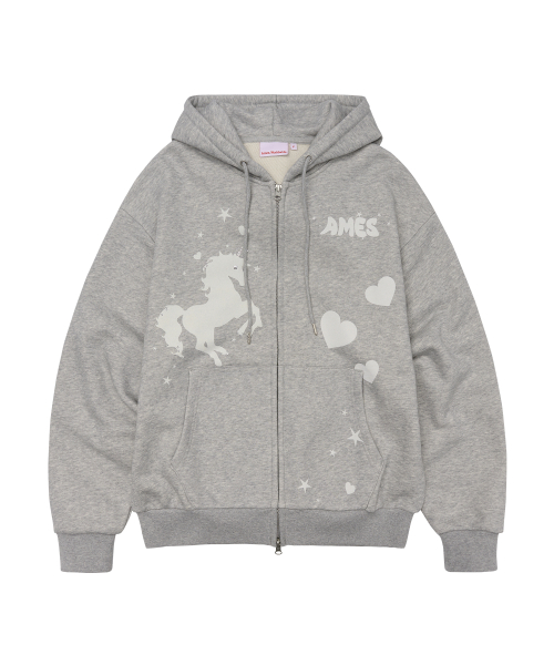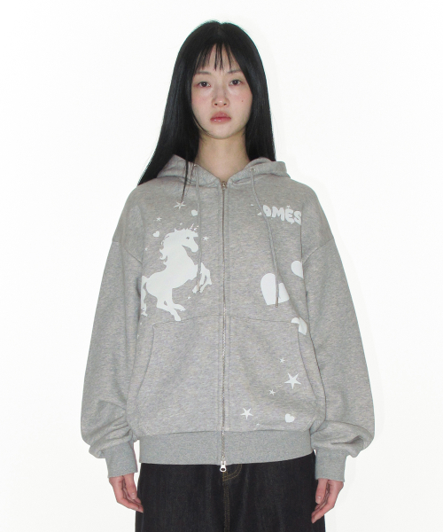 UNICORN DRAWING HOODIE ZIP-UP GREY