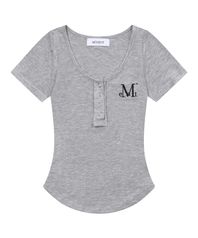 하링 시그니처 로고 스냅 버튼 유넥 굴림 크롭 반팔 티 (5컬러)