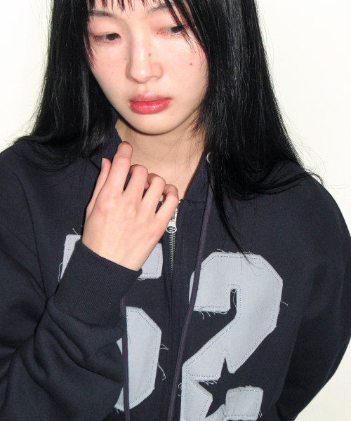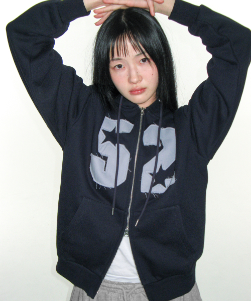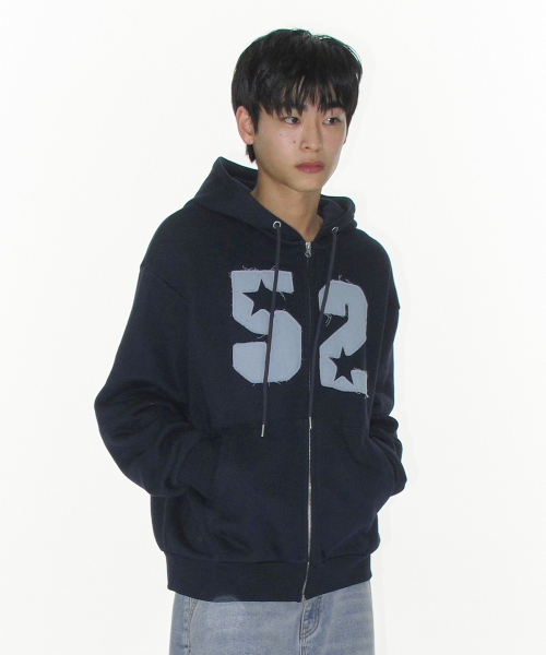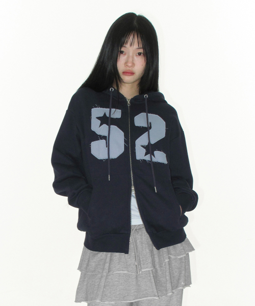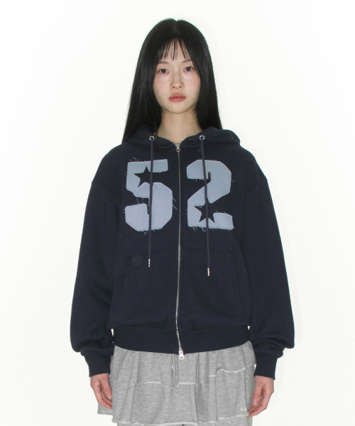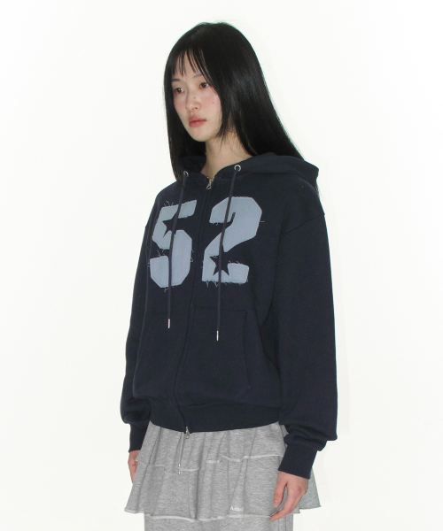 52 APPLIQUE HOODIE ZIP UP NAVY