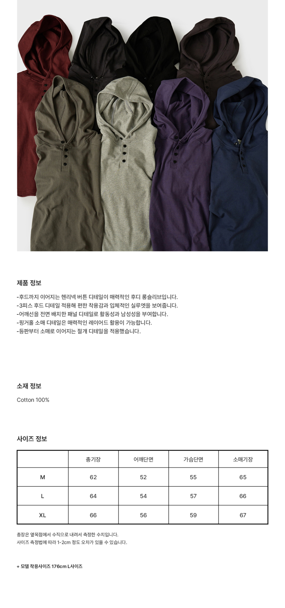 패널 헨리넥 후디 슬리브- 8Color