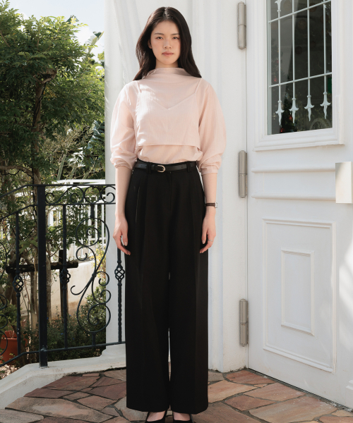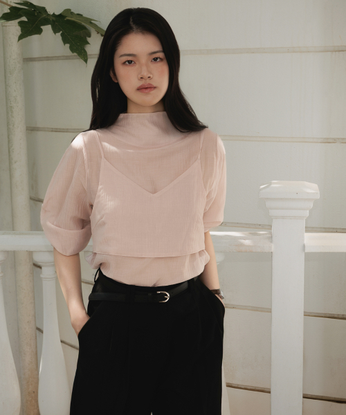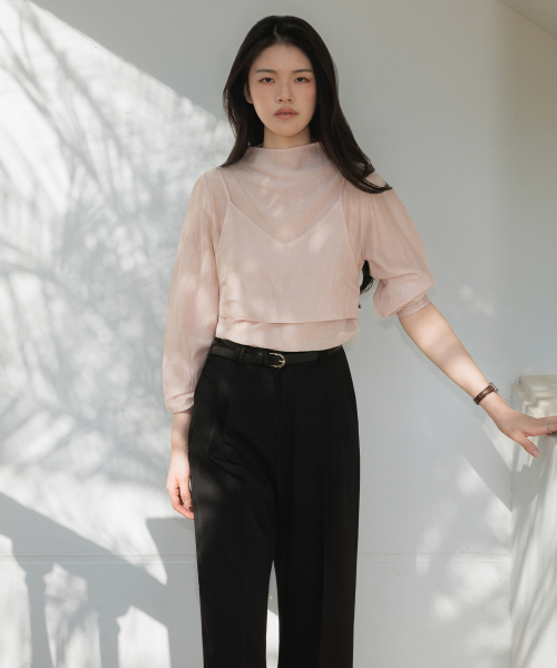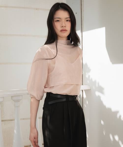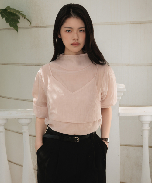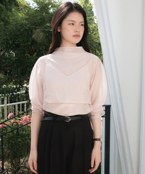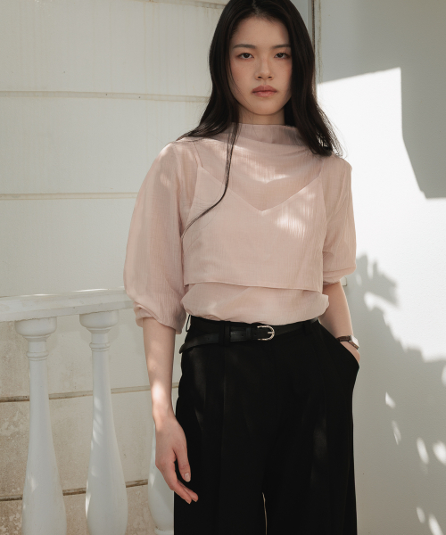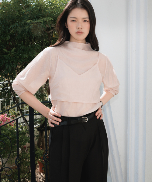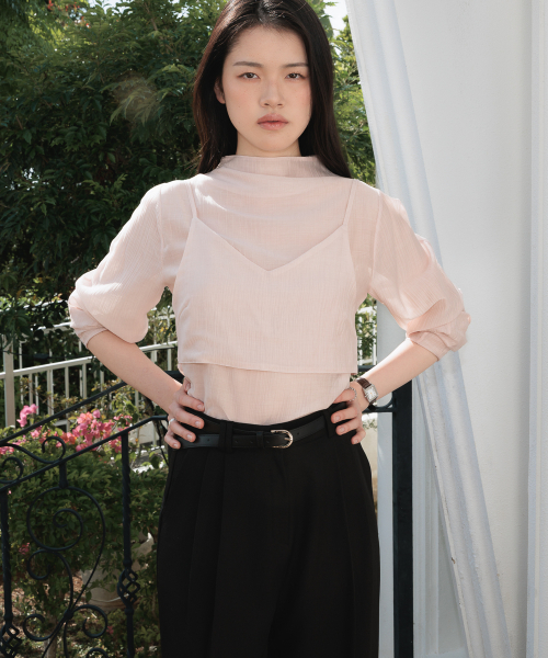 가볍고 은은한 비침이 있는 소재로 제작된 레이어드 블라우스입니다.