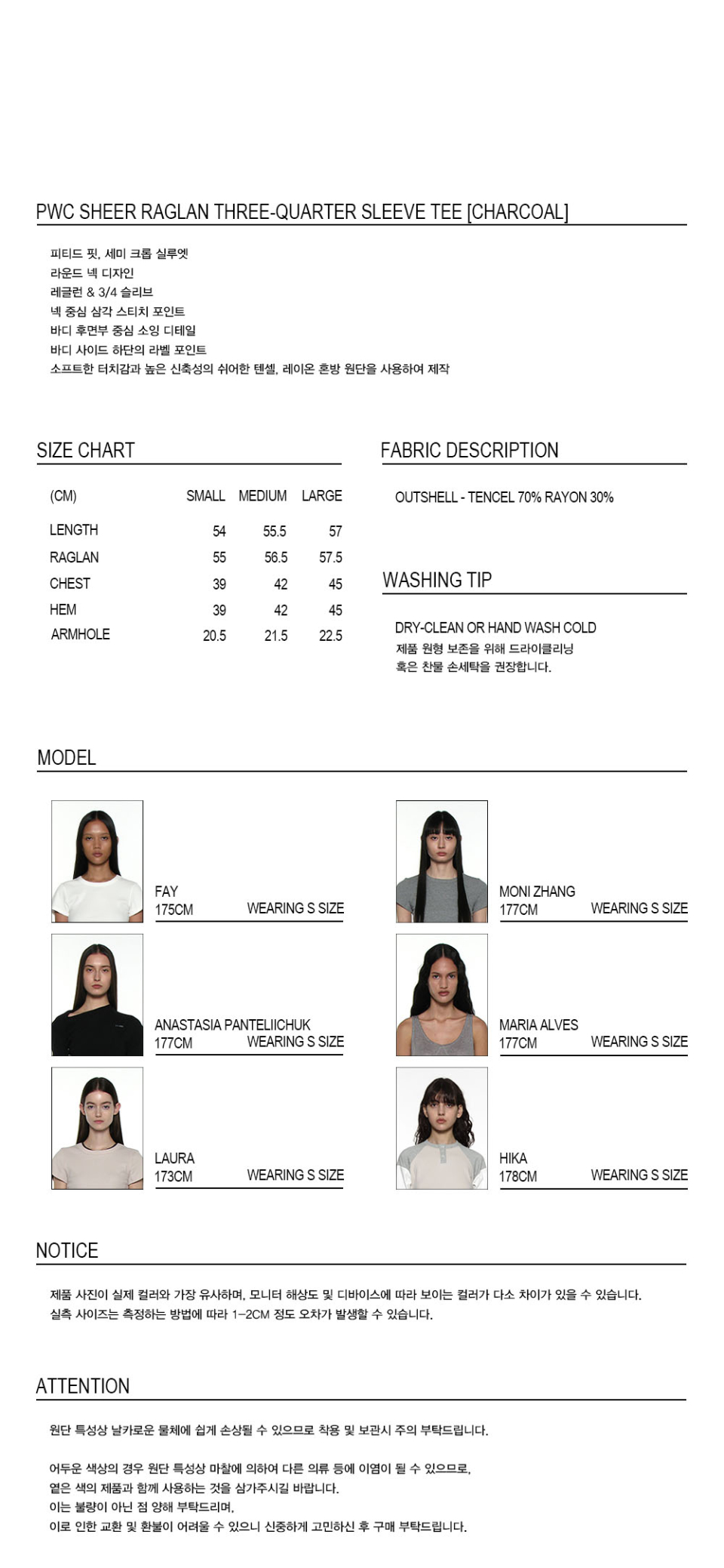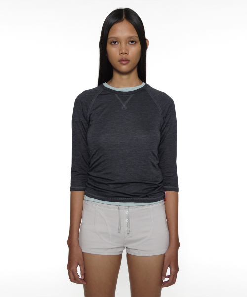 PWC 쉬어 레글런 쓰리쿼터 슬리브 티_차콜