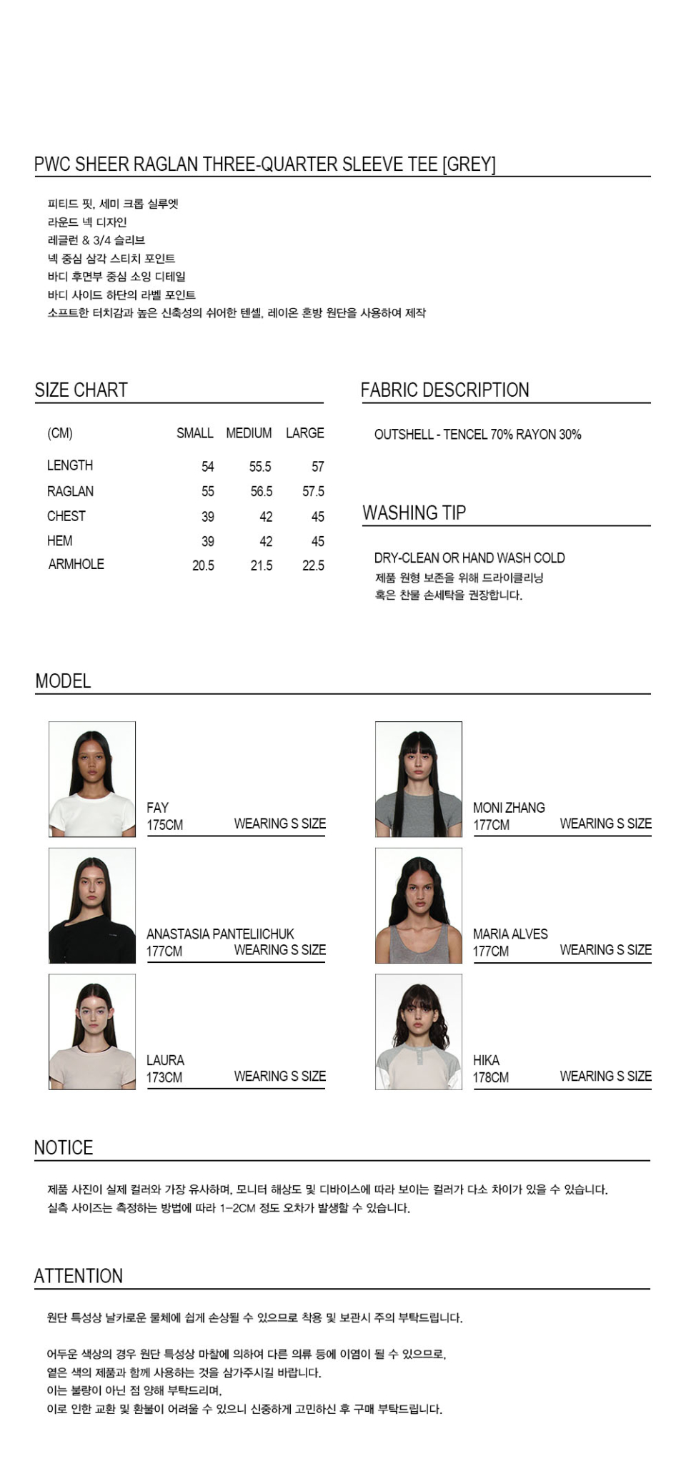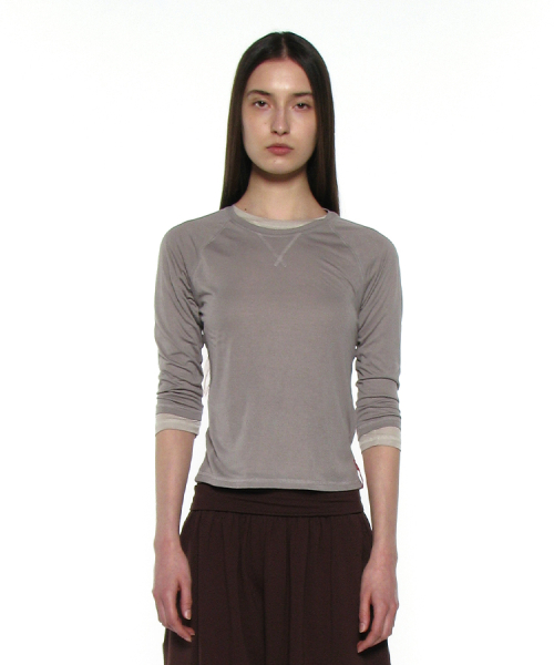 PWC 쉬어 레글런 쓰리쿼터 슬리브 티_그레이