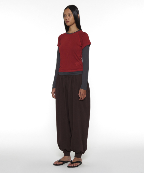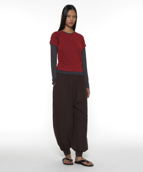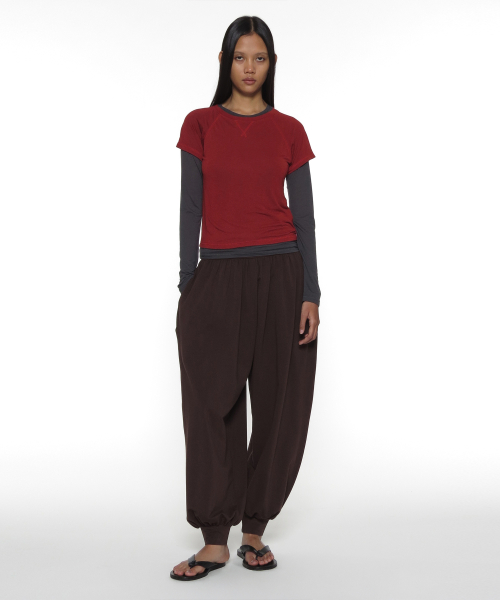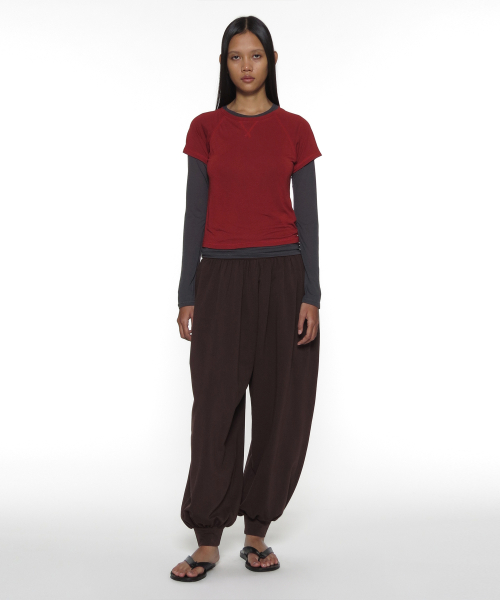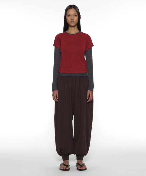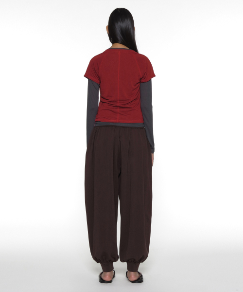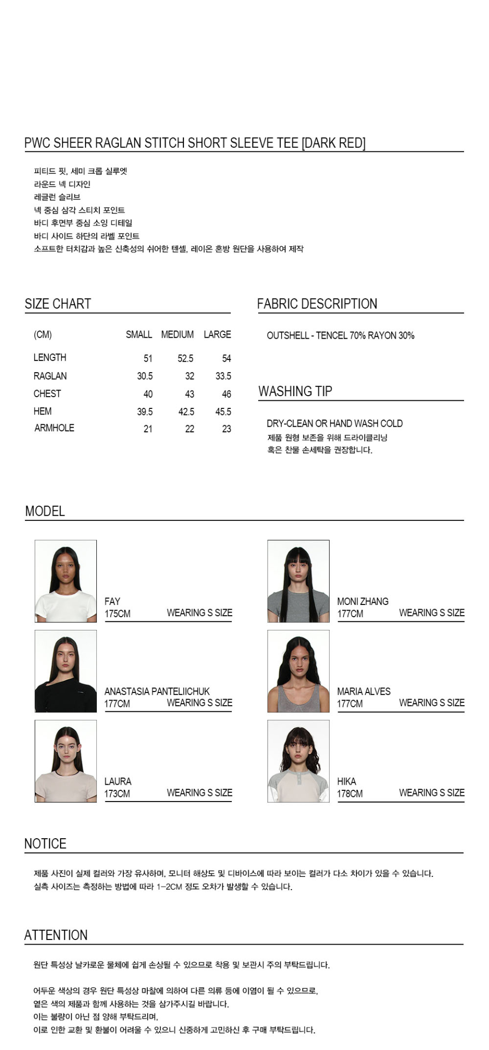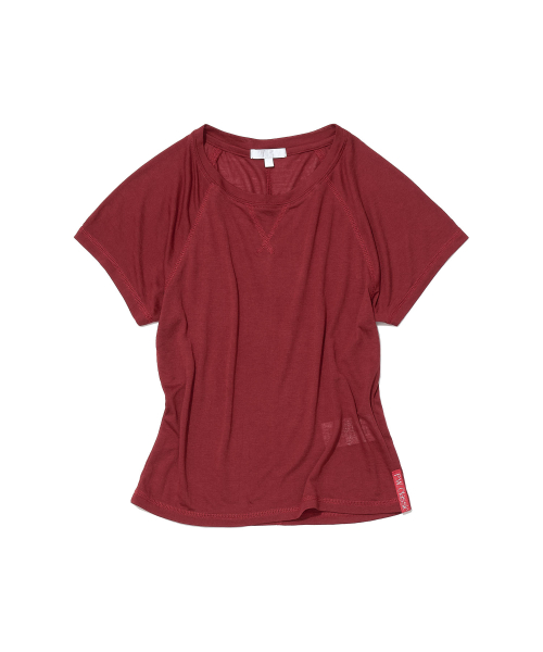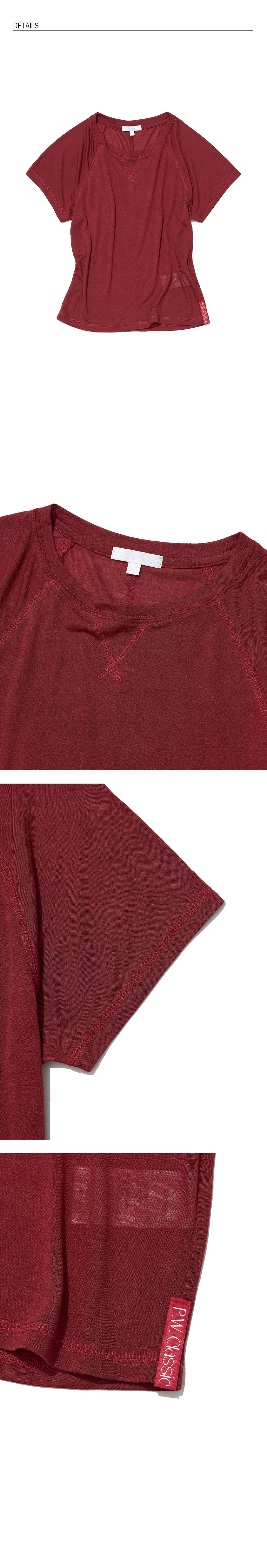 PWC 쉬어 레글런 스티치 숏슬리브 티_다크 레드