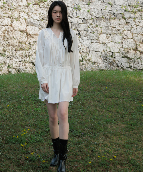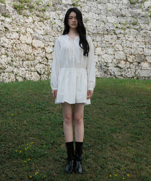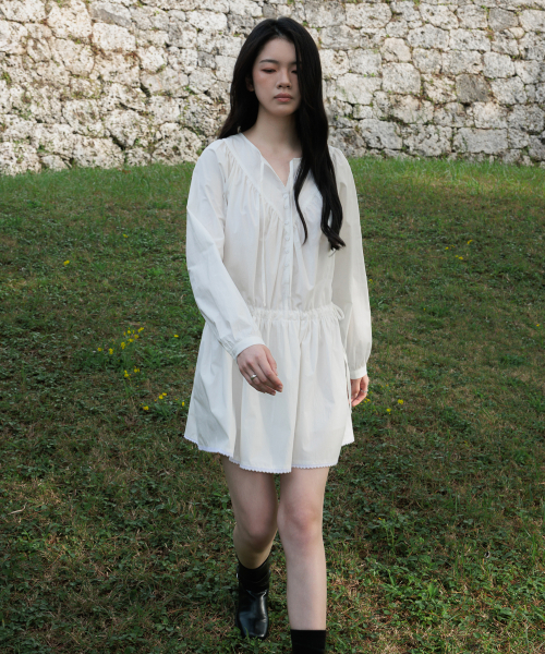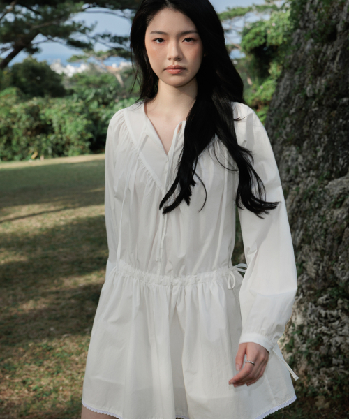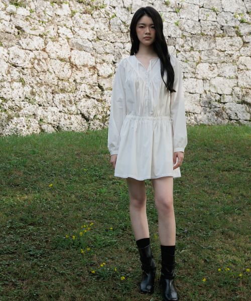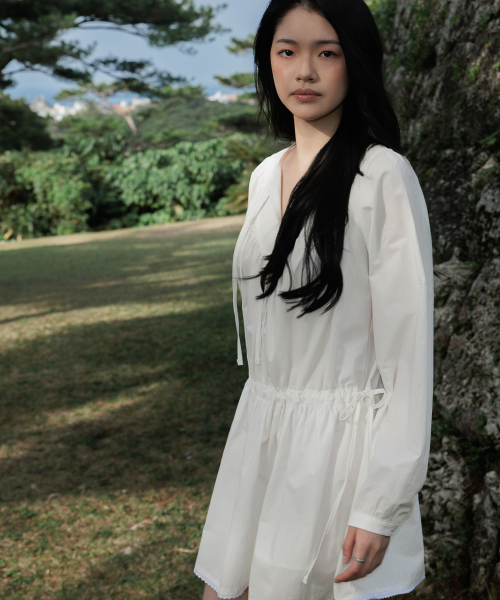 밑단 둘레에는 잔잔한 레이스 배색을 더해 걸을 때마다 살랑이는 라인이 우아하게 표현되며