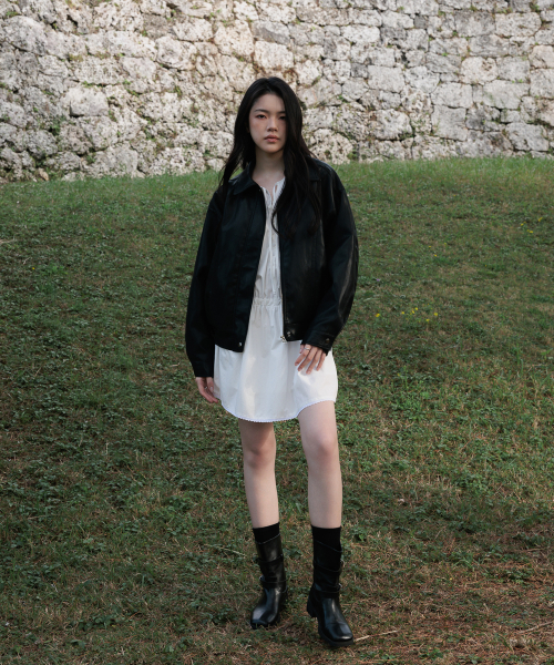 뒷넥 중심에는 레이스 라벨 포인트로 러블리한 포인트를 주었습니다.