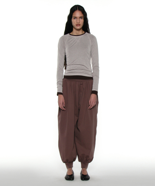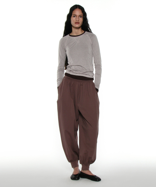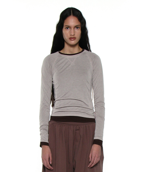 PWC 쉬어 레글런 스티치 롱슬리브 티_다크 베이지