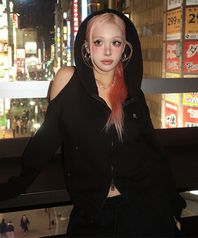 [희재 PICK] Offset Cutout Zip Up Hoodie - Black