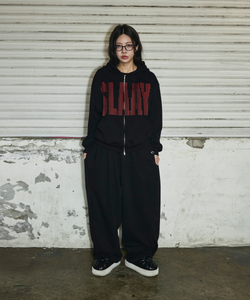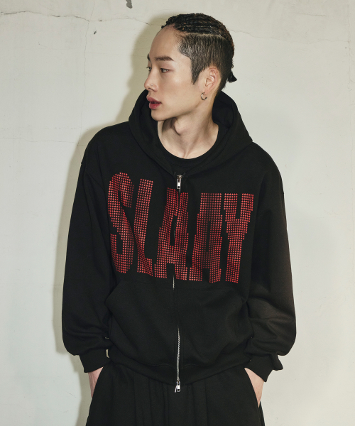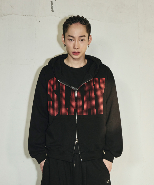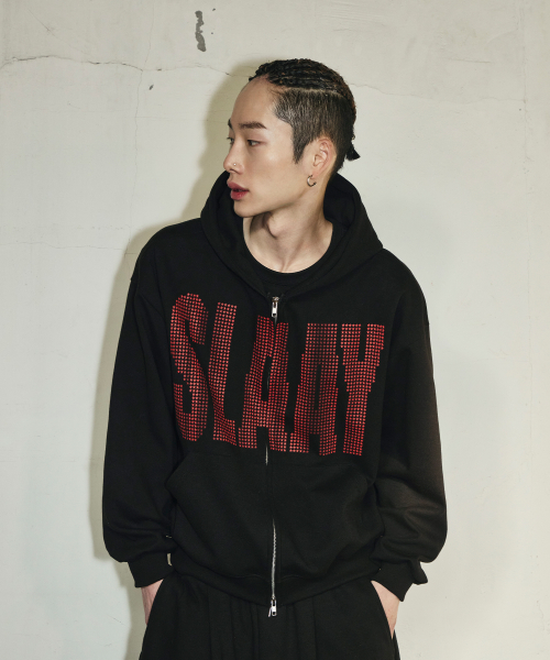 SLAAY 스타 도트 크롭 후드 집업[블랙]