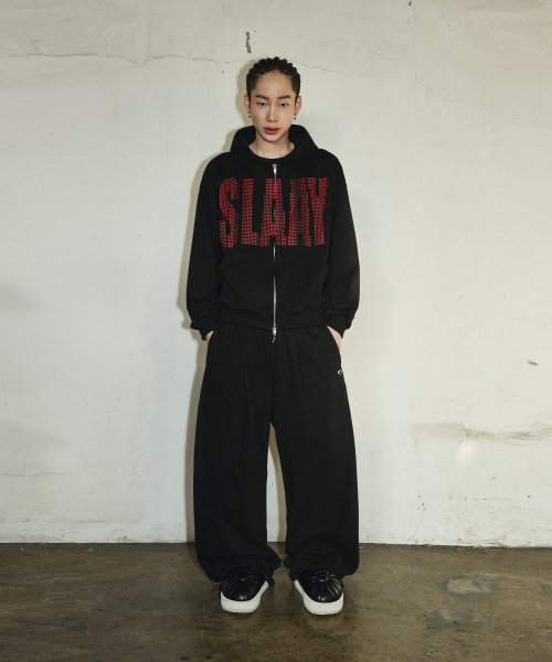 스몰 로고 멀티턱 커브드 스웨트 팬츠[블랙]