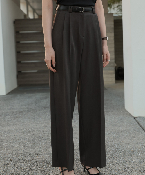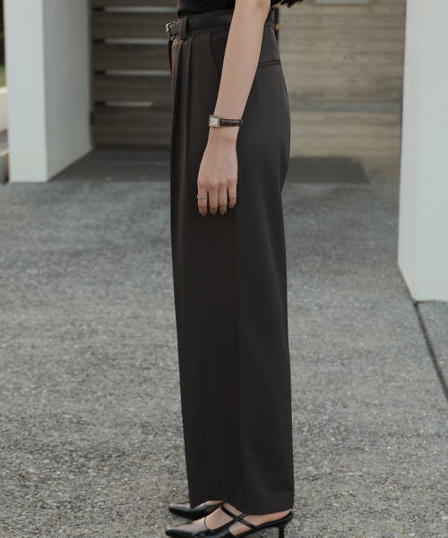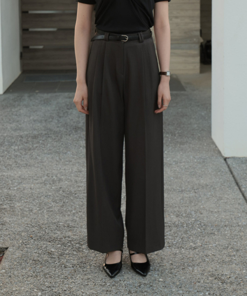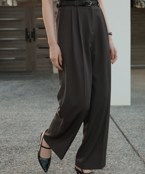 클래식한 무드의 투턱 하이웨스트 와이드 슬랙스입니다.