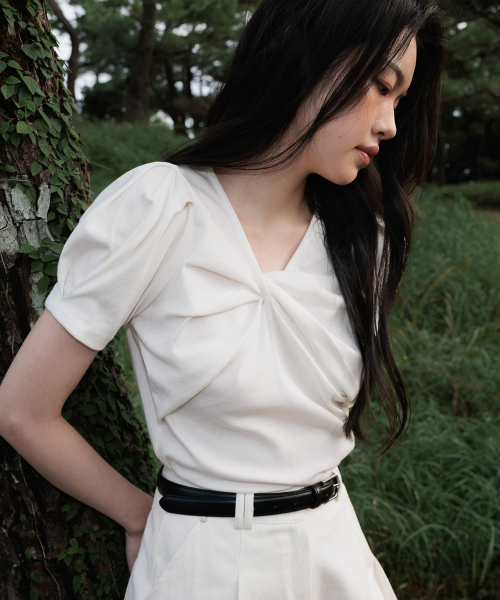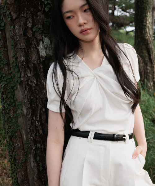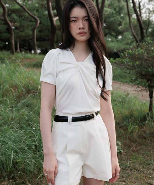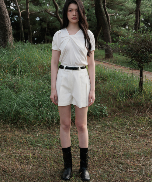 프론트 투턱 디테일이 입체감을 살려 허리와 힙 라인을 깔끔하게 정돈해 주며
