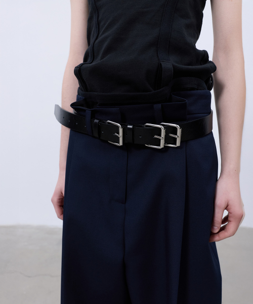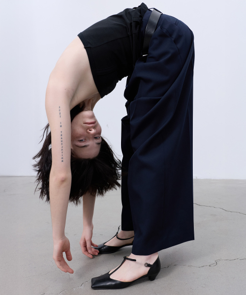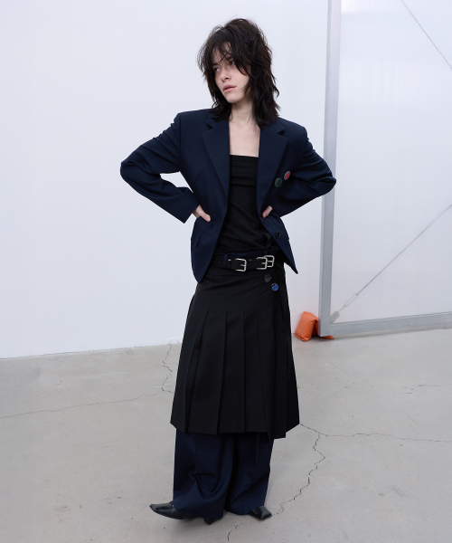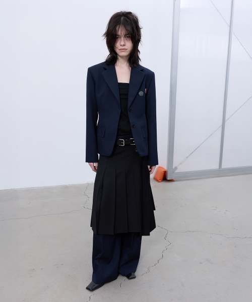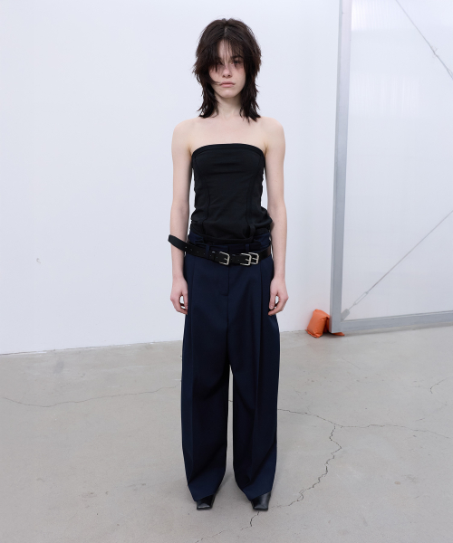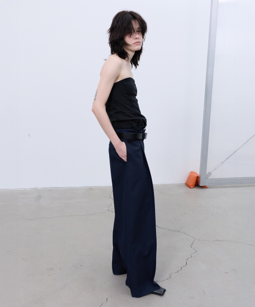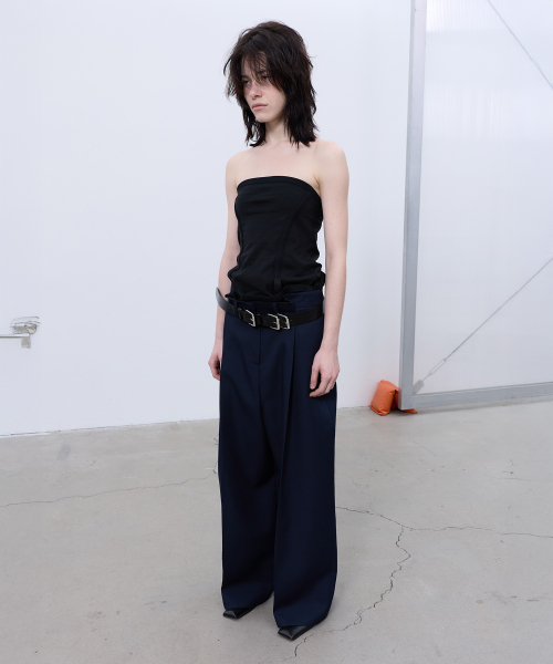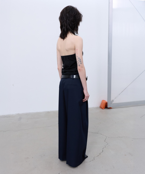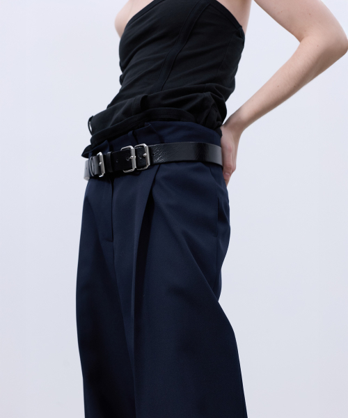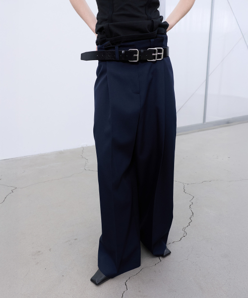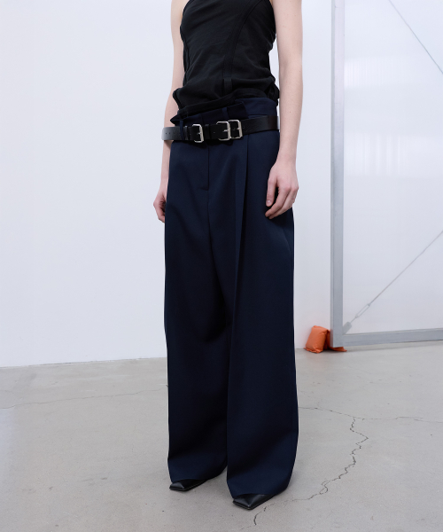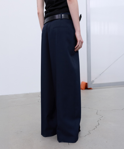 BACK-PLEATED WIDE PANTS (DARK NAVY)