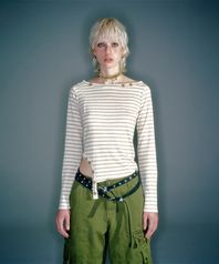 MAHO OFF-SHOULDER STRIPE LONG SLEEVE BEIGE