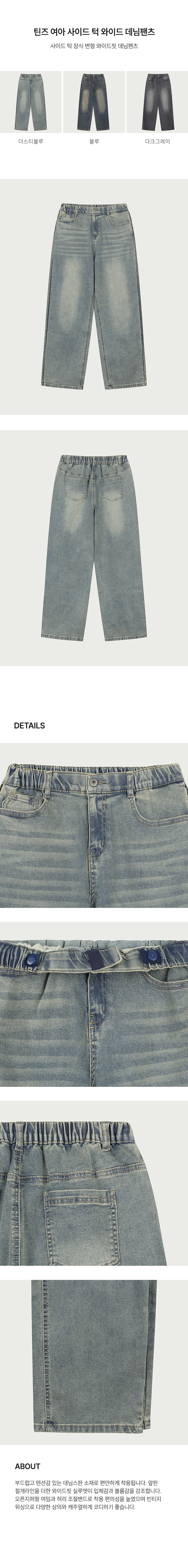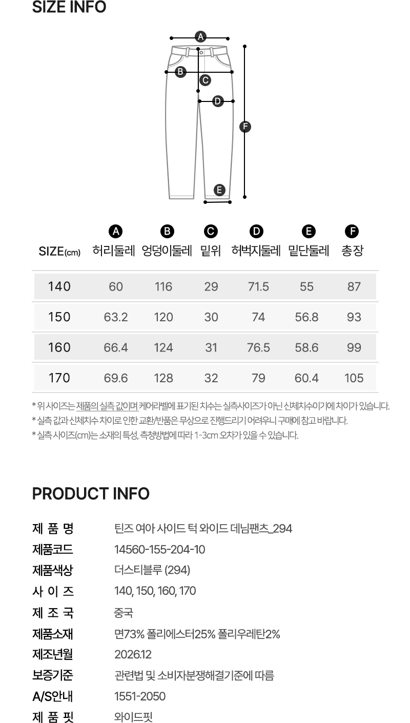 틴즈 여아 사이드 턱 와이드 데님팬츠_294(14560-155-204-10)