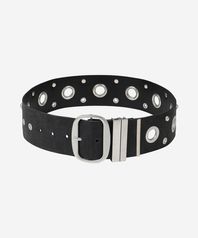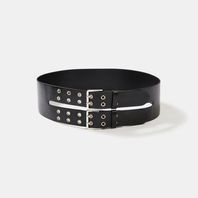 WIDE DOUBLE EYELET LEATHER BELT (BLACK)