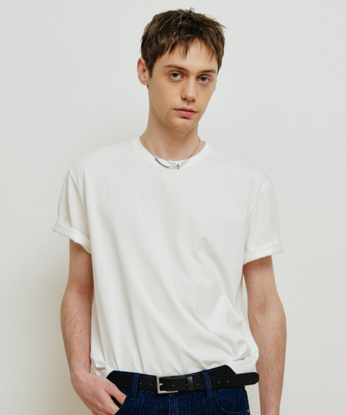 스트라이프 크롭 반팔 티셔츠 [아이보리]