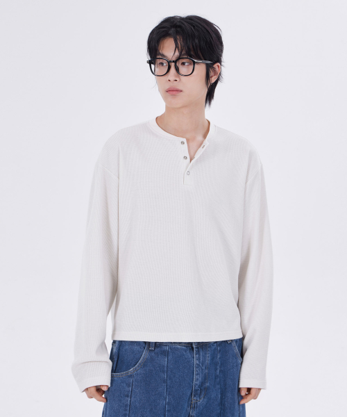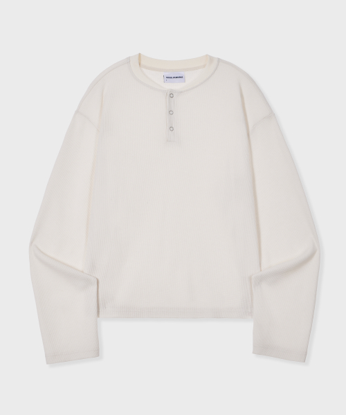 스테디 와플 크롭 헨리넥 티셔츠 크림