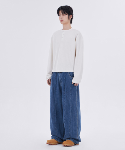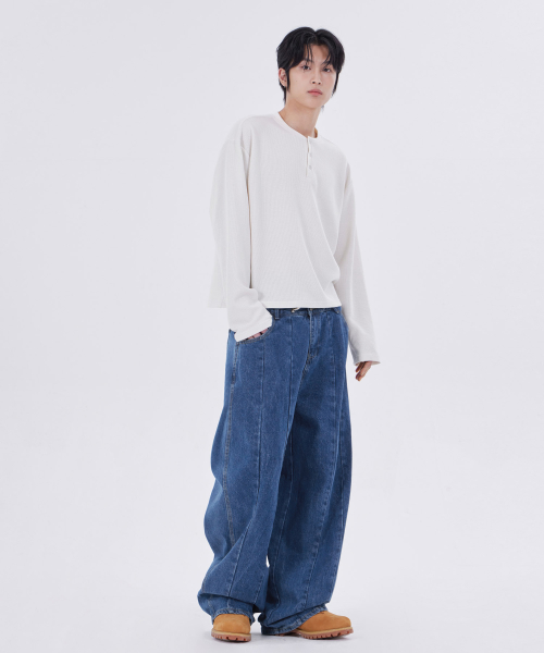 TX304 커브드 배기 벌룬 데님 (블랙)