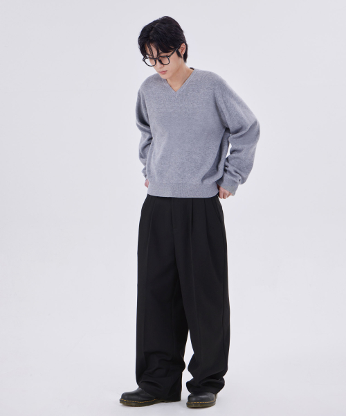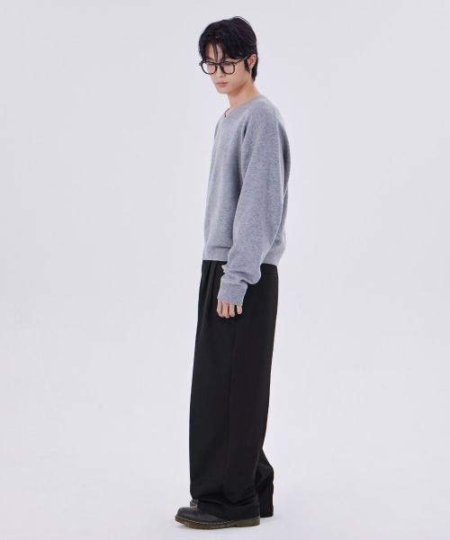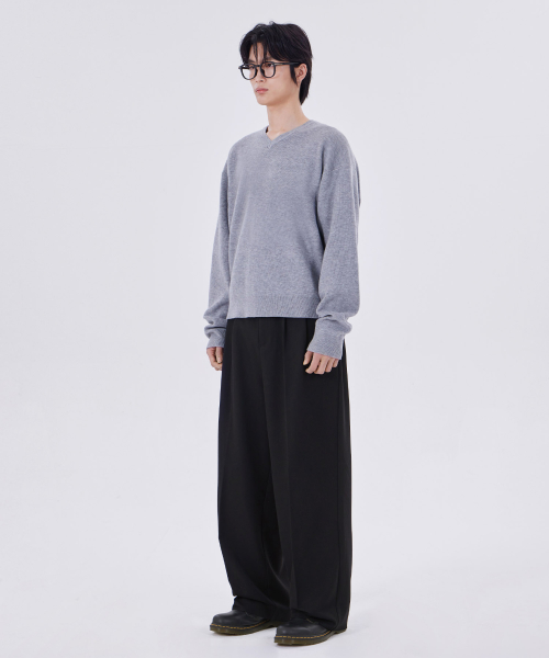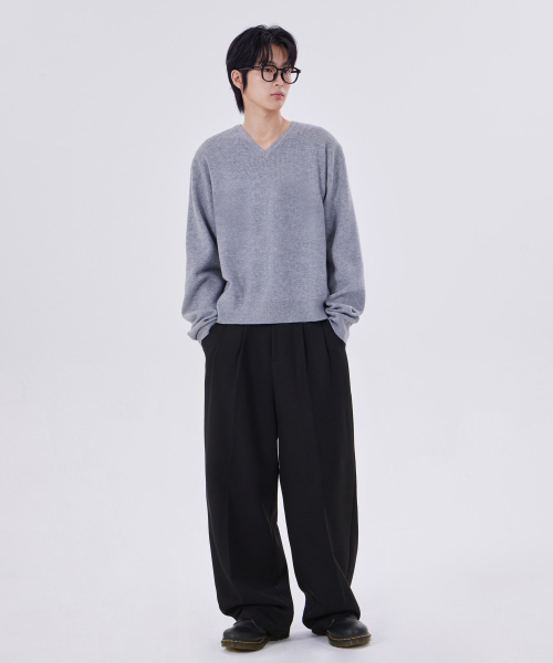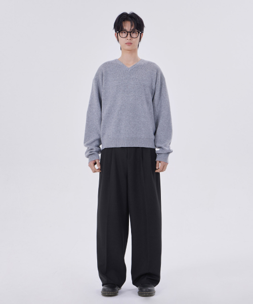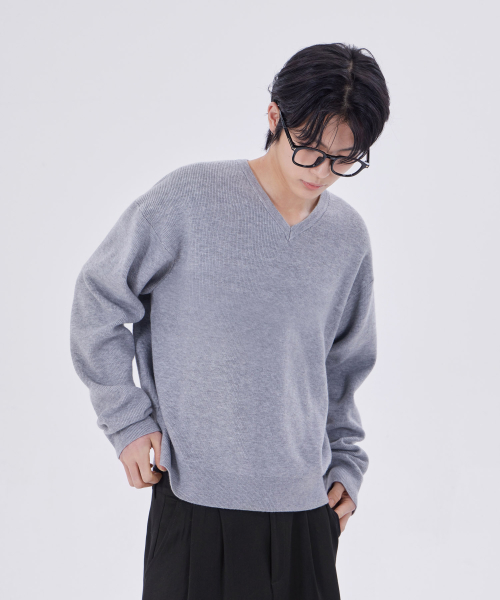 미니멀 브이넥 크롭 니트 그레이