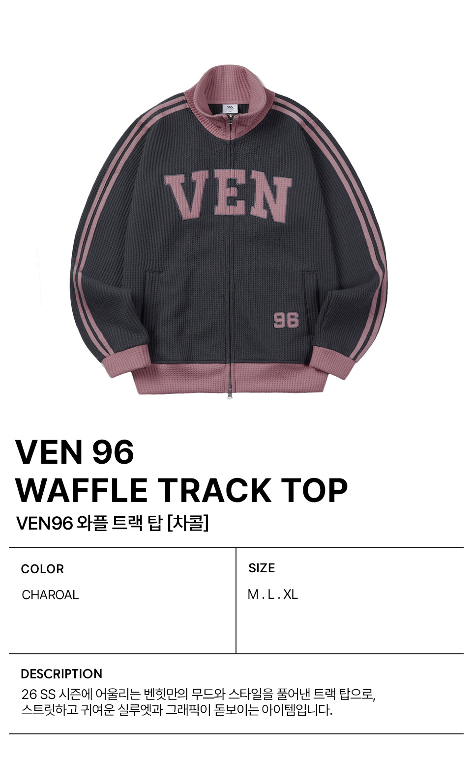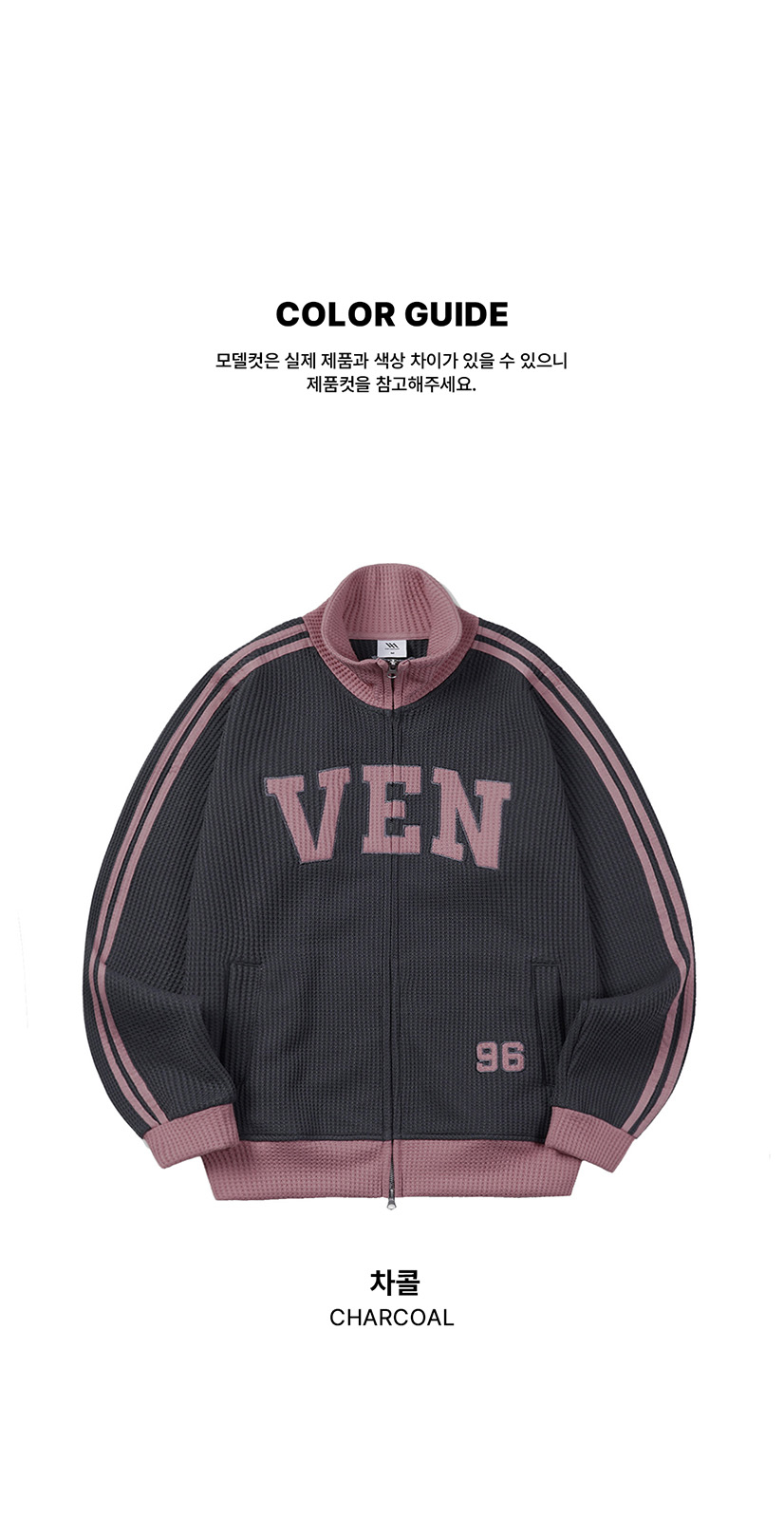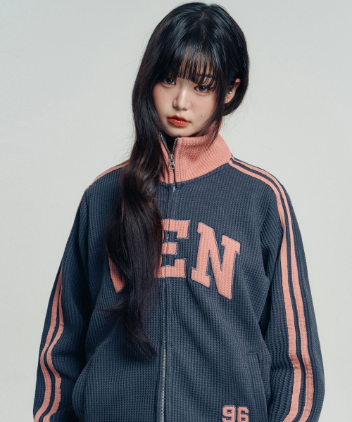 VEN 96 와플 배색 트랙탑_차콜