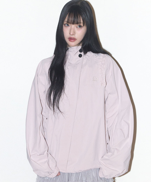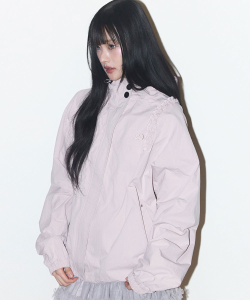 오블리크 프릴 후드 자켓 핑크