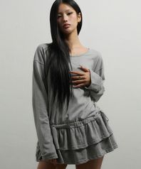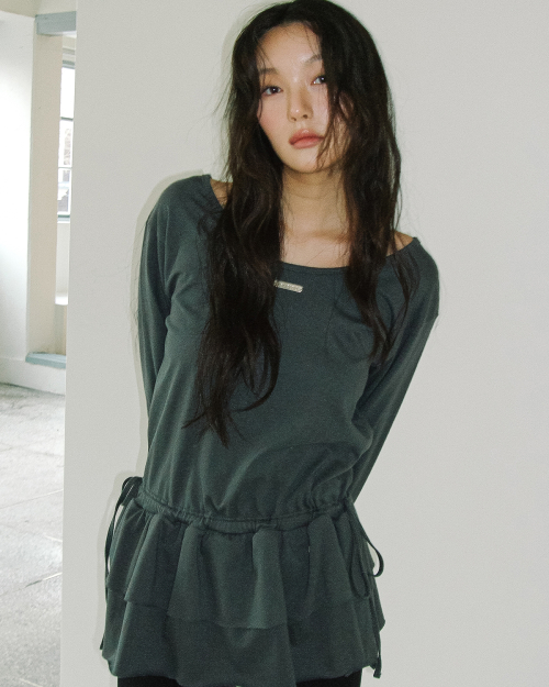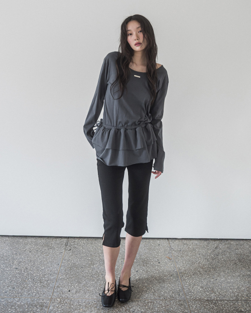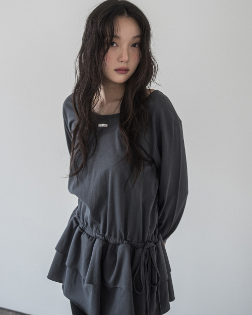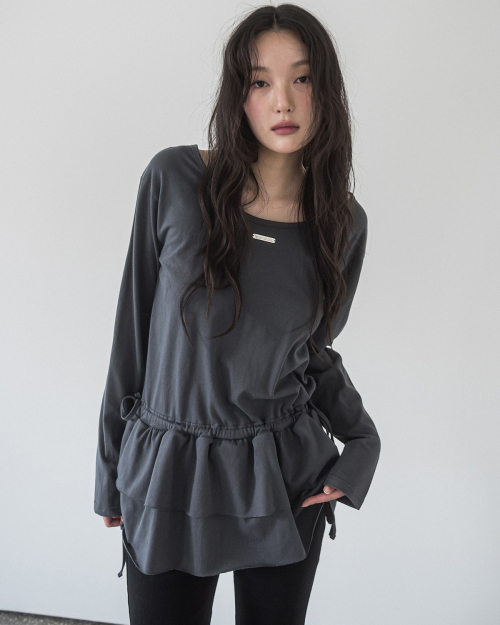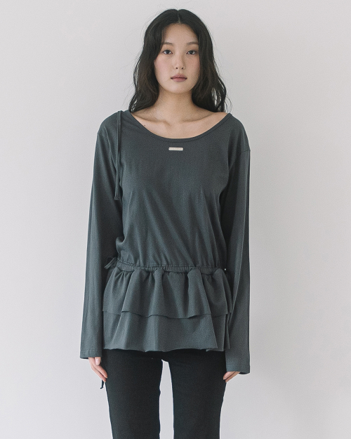 DOUBLE FRILL L/S TEE(CHARCOAL)