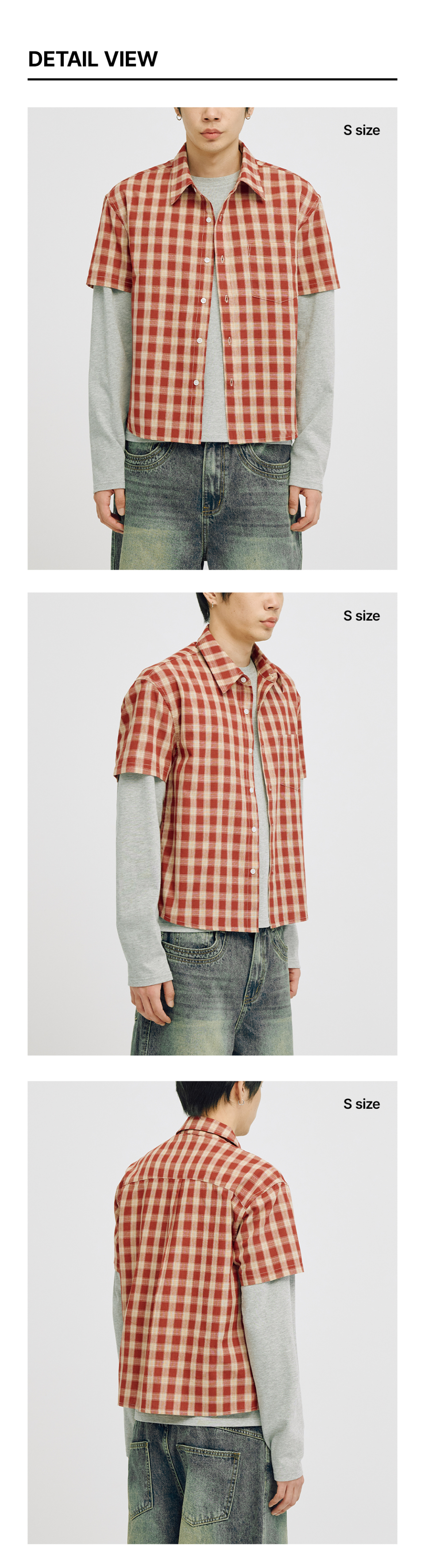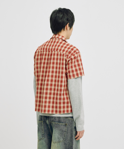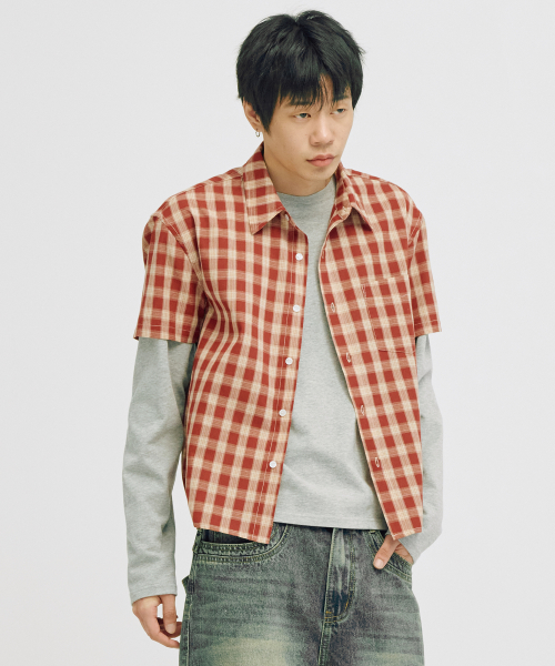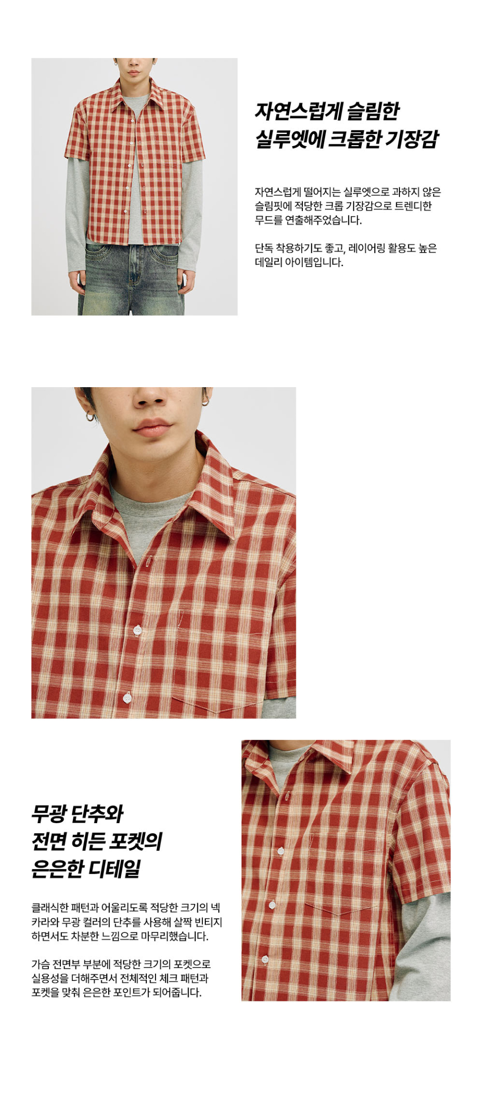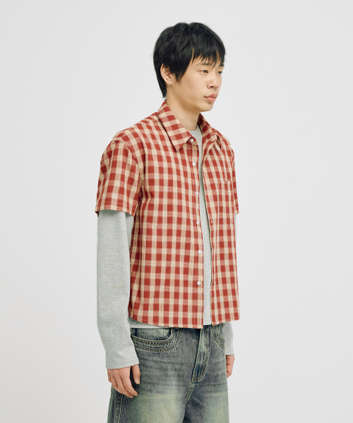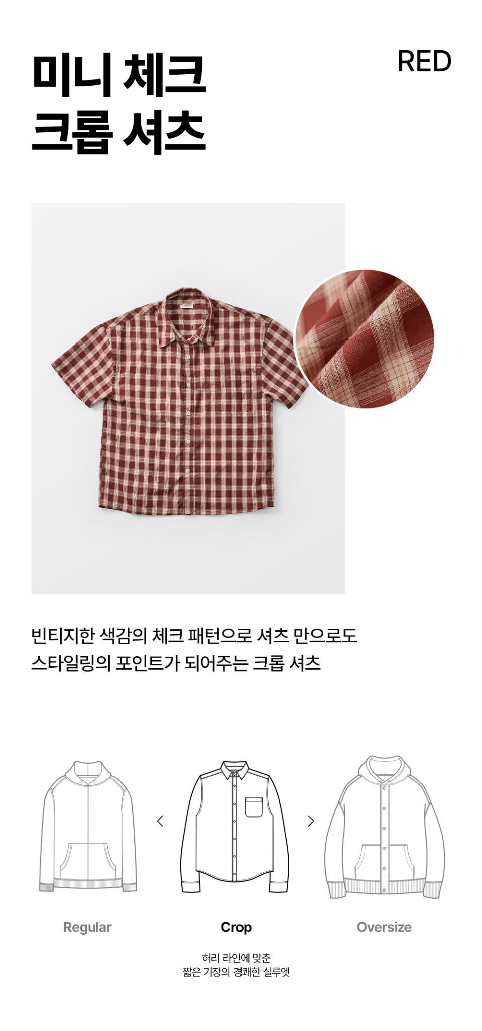 [크롭 롱 슬리브 추가] 미니체크 크롭 셔츠 (레드)
