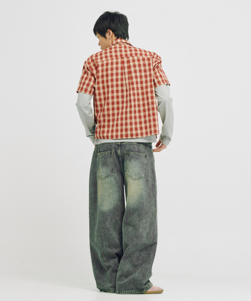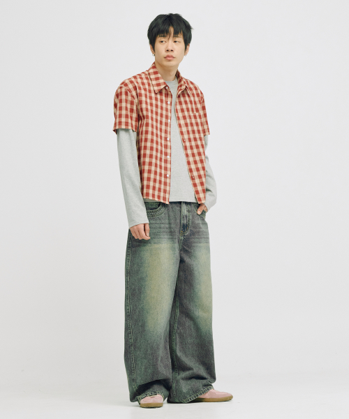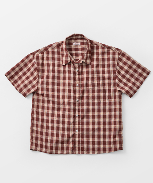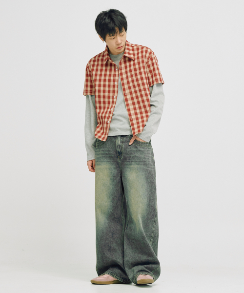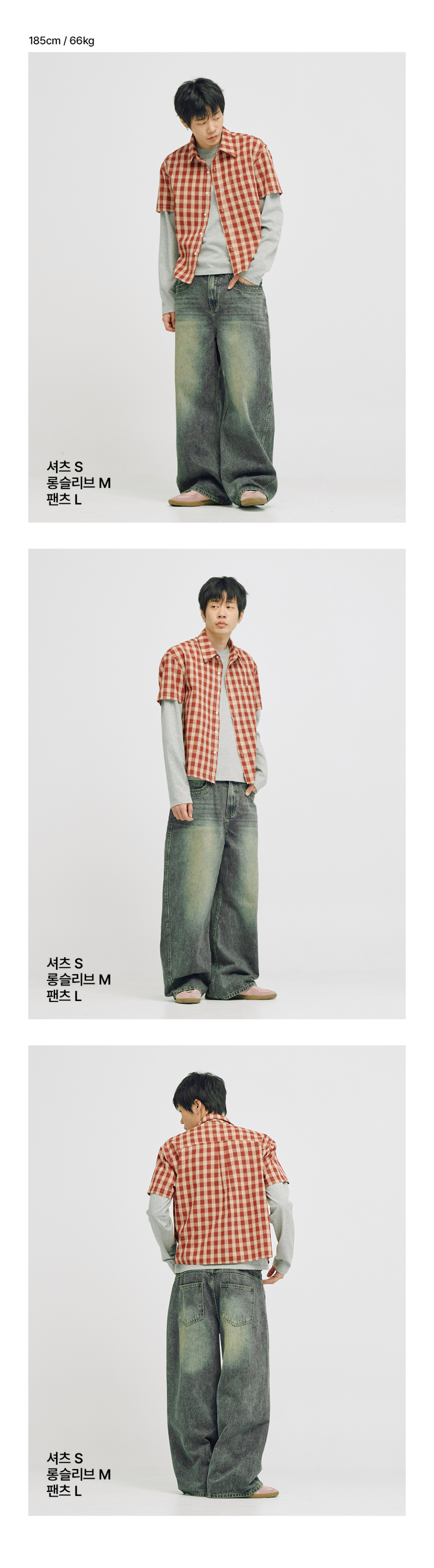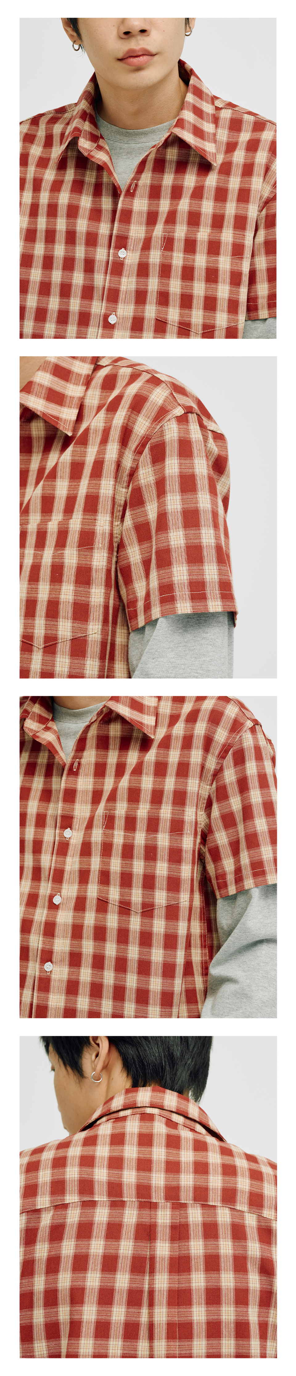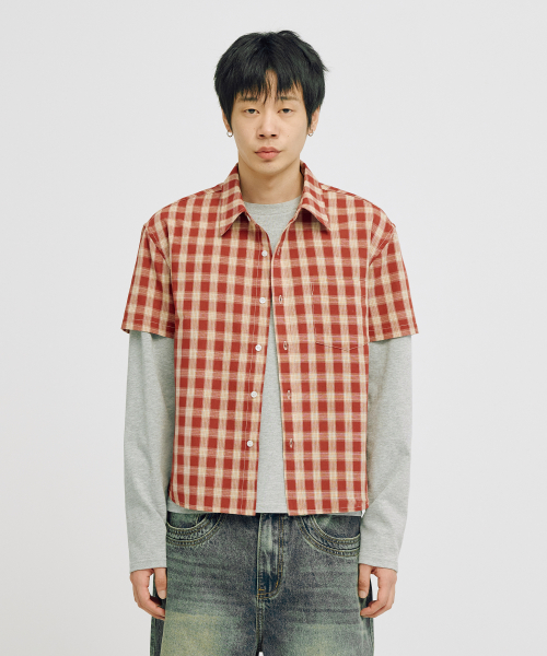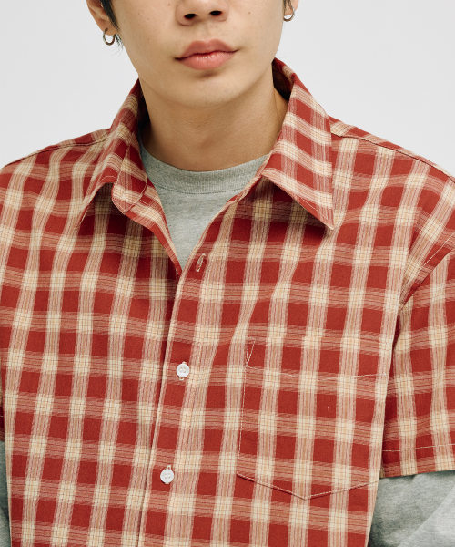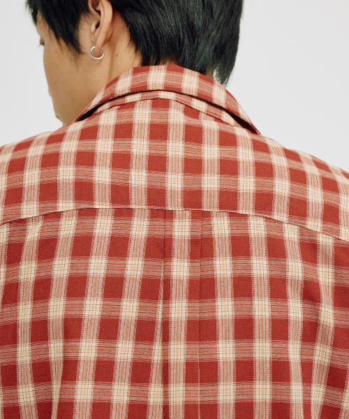 [크롭 롱 슬리브 추가] 미니체크 크롭 셔츠 (레드)