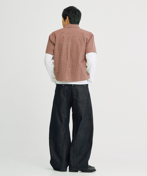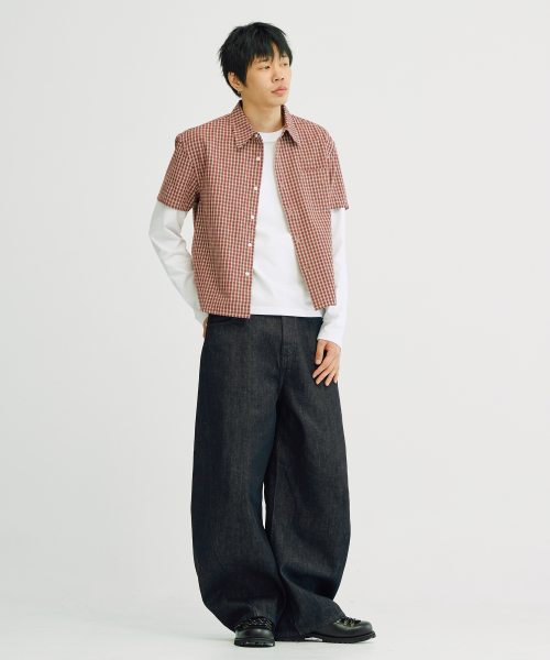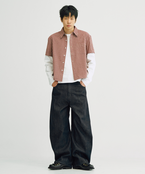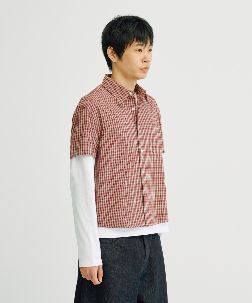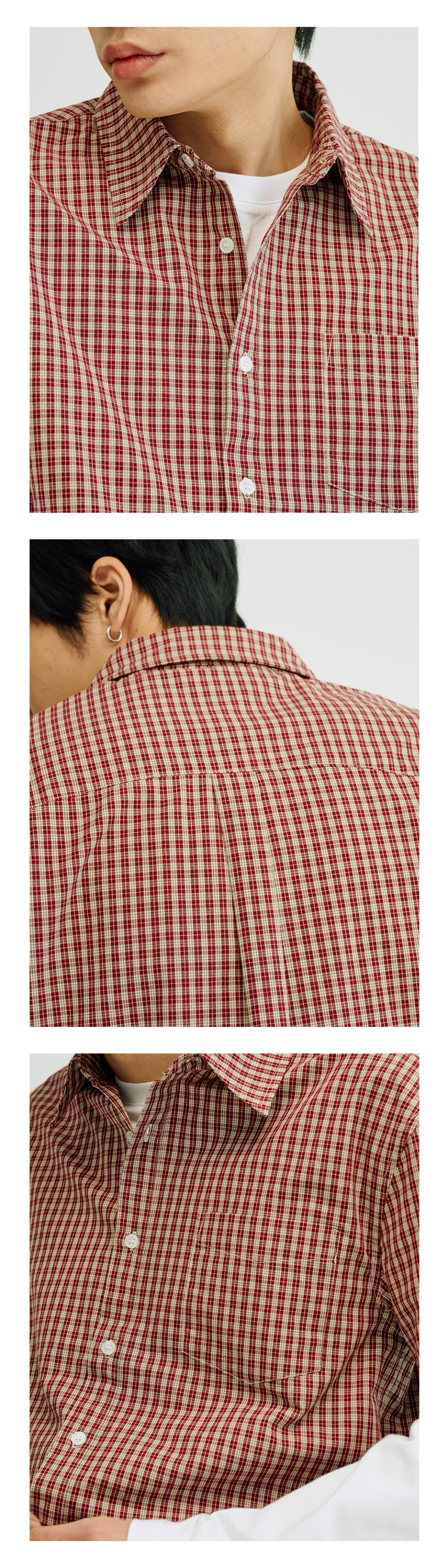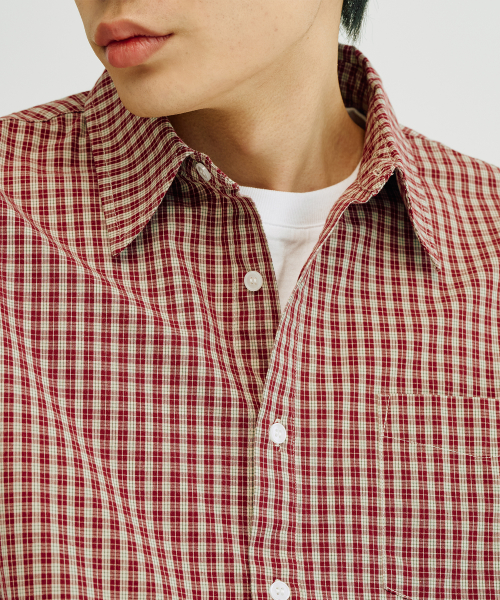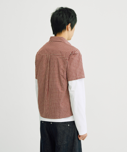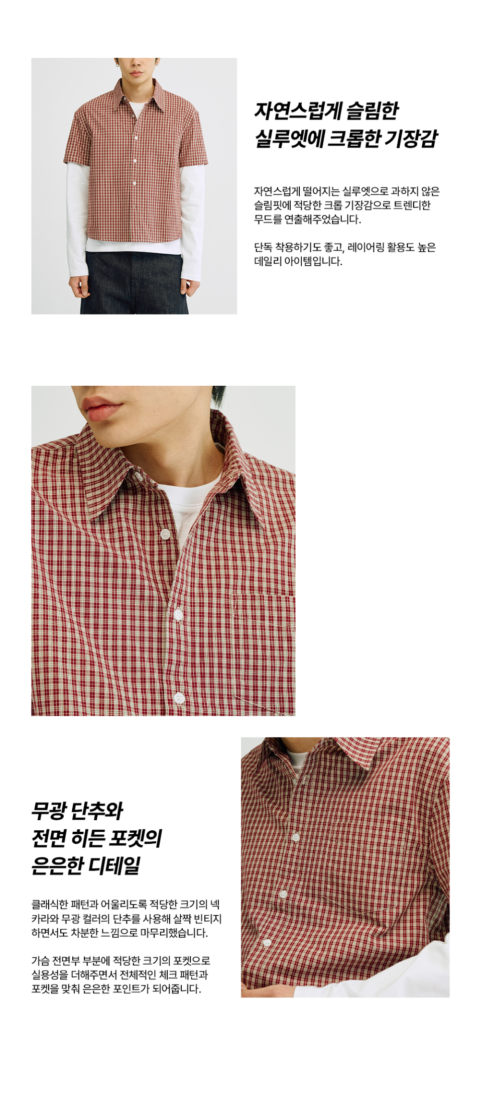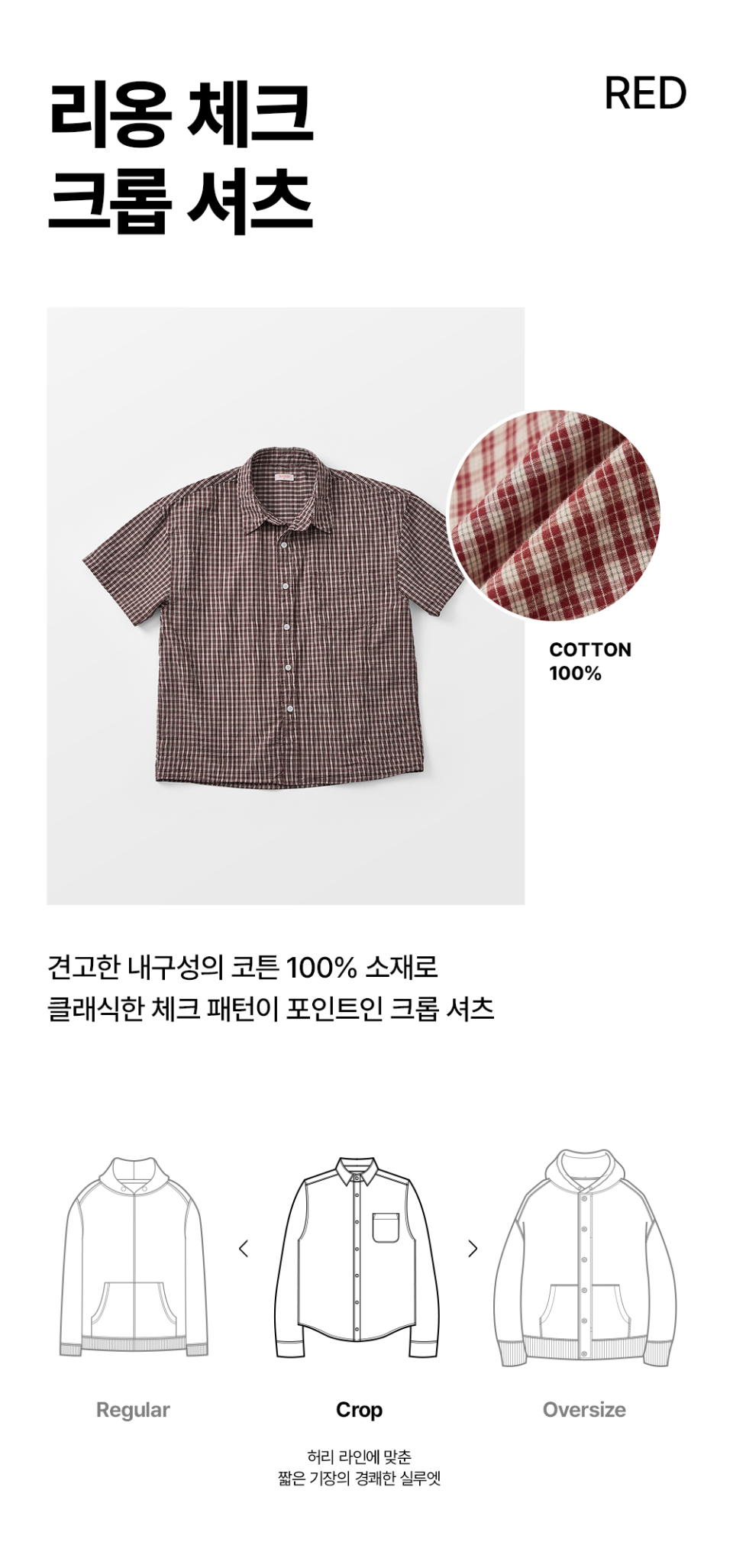 [크롭 롱 슬리브 추가] 리옹체크 크롭 셔츠 (레드)