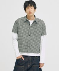 [크롭 롱 슬리브 추가] 아일렛체크 크롭 셔츠 (아일렛블랙)