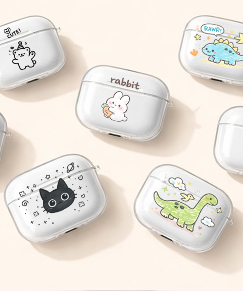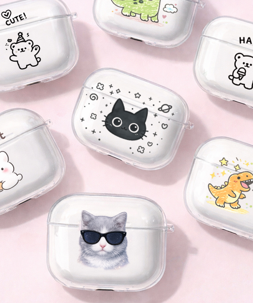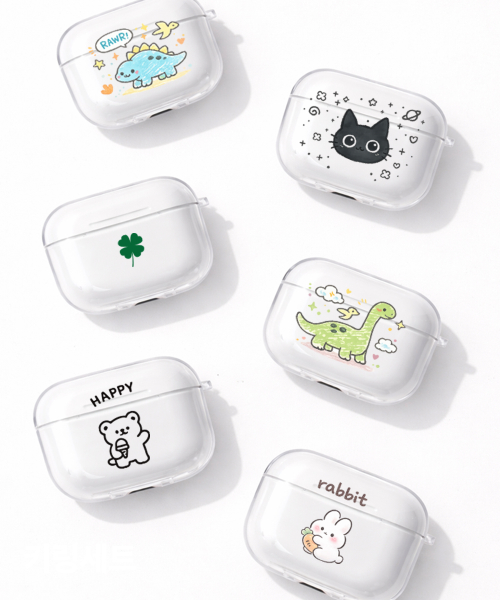 고양이 공룡 곰돌이 에어팟 버즈 투명 젤리 케이스 4 3 2 1 세대 프로