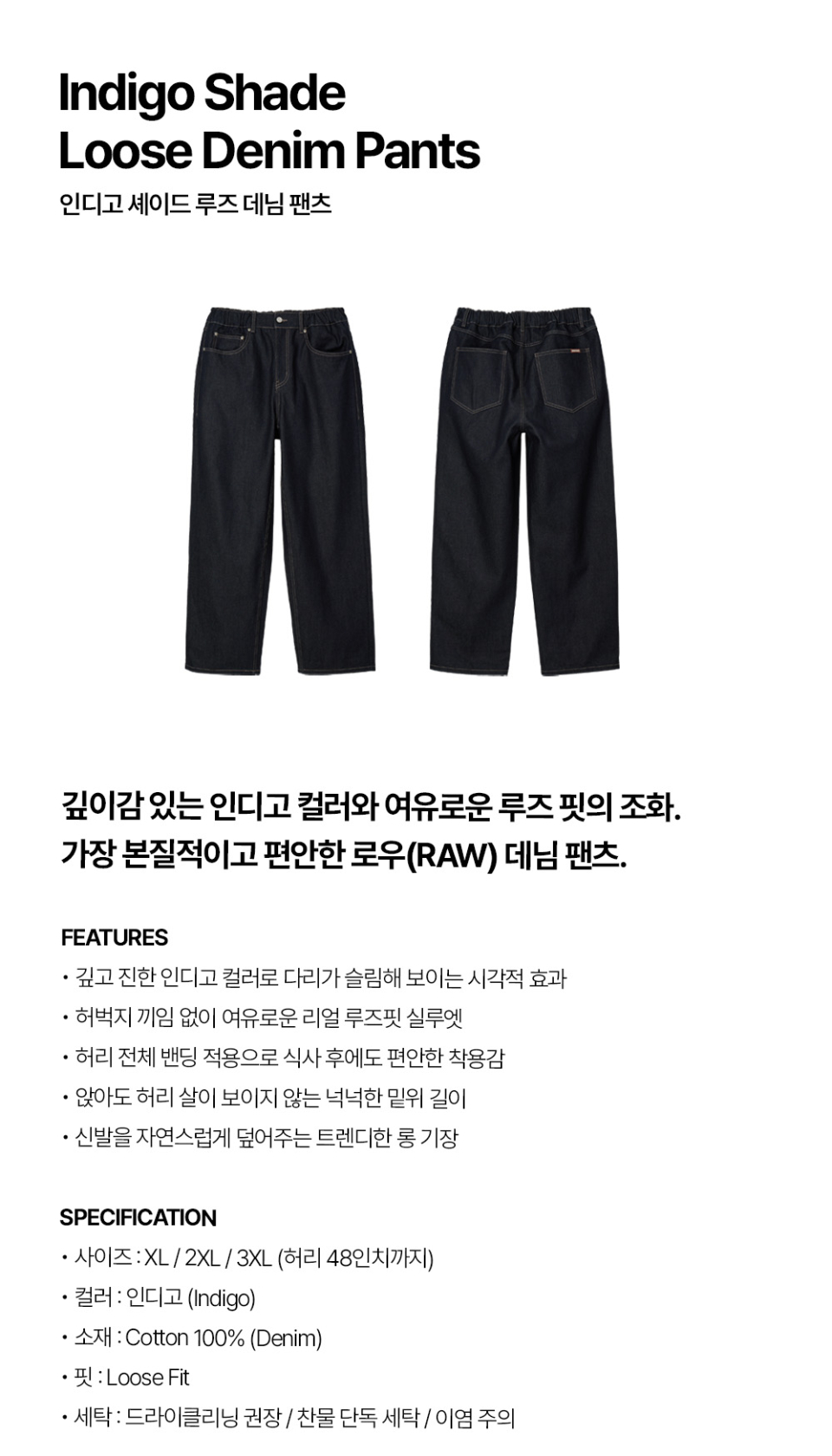 [빅사이즈]인디고 셰이드 루즈 데님 팬츠