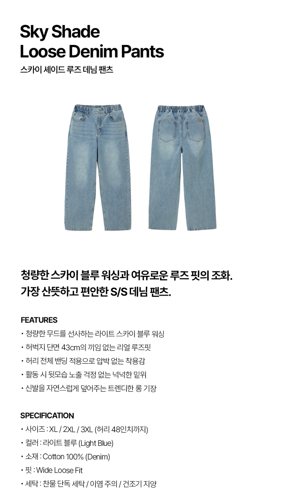 [빅사이즈]스카이 셰이드 루즈 데님 팬츠