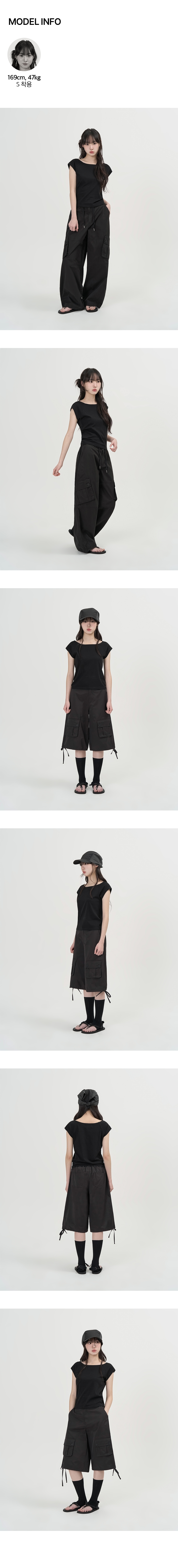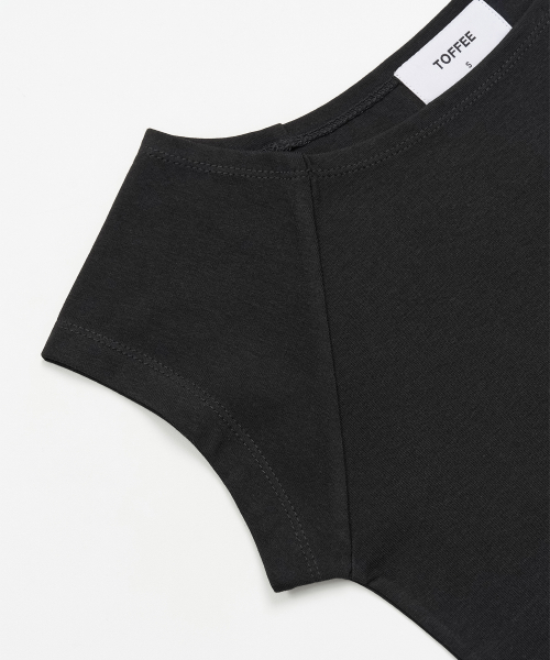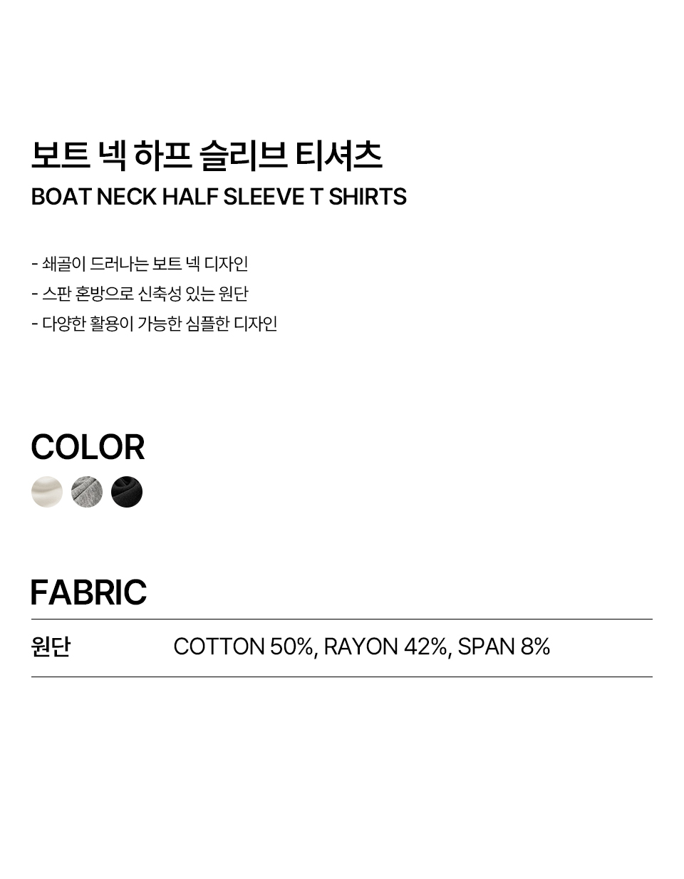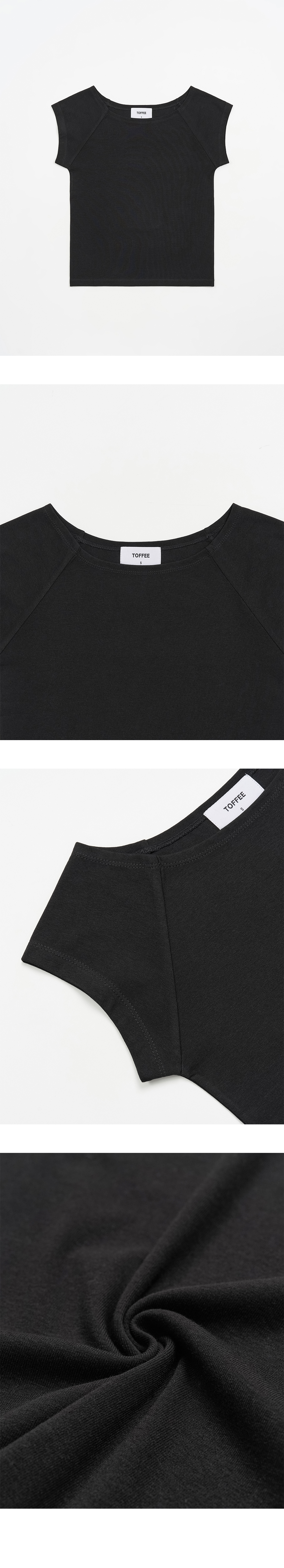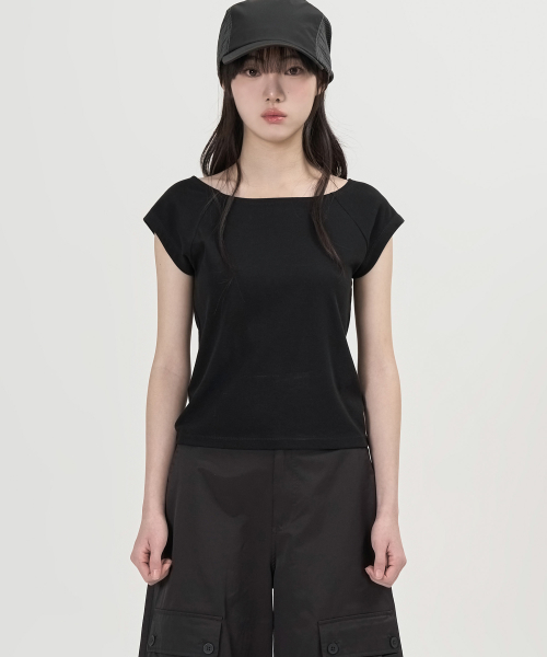 W 보트넥 하프 슬리브 티셔츠 (BLACK)