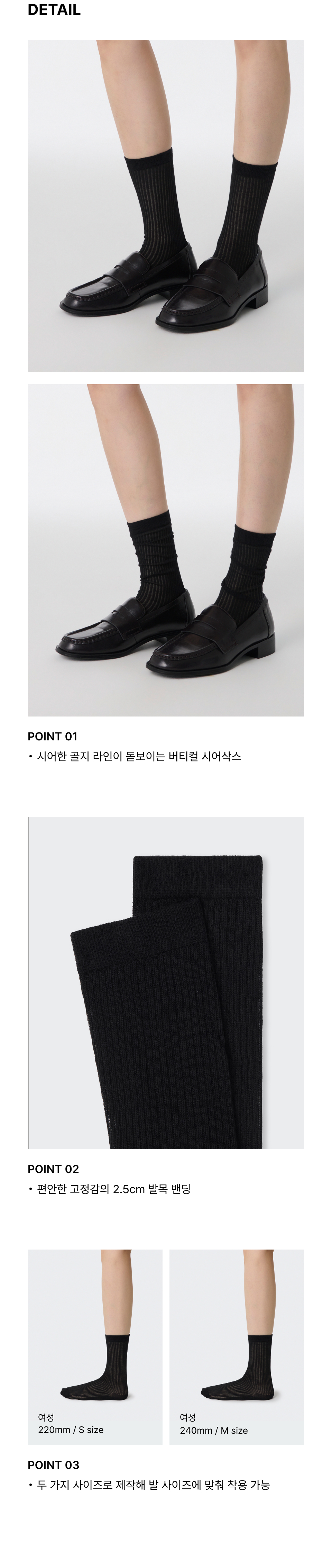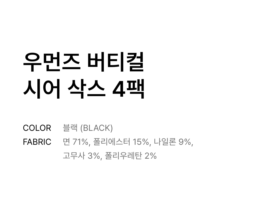 우먼즈 버티컬 시어삭스 4팩 [블랙]