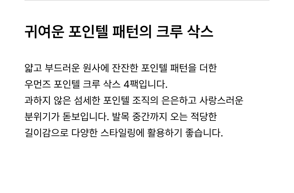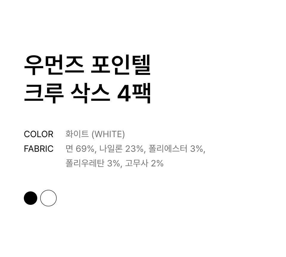우먼즈 포인텔 크루삭스 4팩 [화이트]