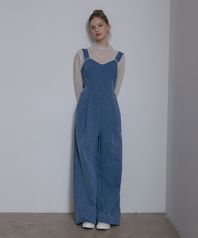 워싱 러블리 오버롤팬츠-블루워싱