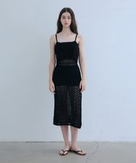 크로쉐 슬리브리스 니트원피스-블랙