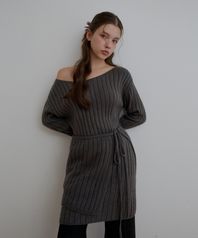 [SET]_모헤어 오프숄더 원피스+레이어드 스커트-그레이