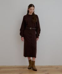 버튼 롱 니트 원피스-브라운