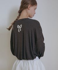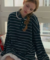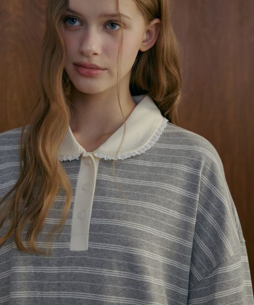 스트라이프 카라 티셔츠(기모/쭈리)-그레이