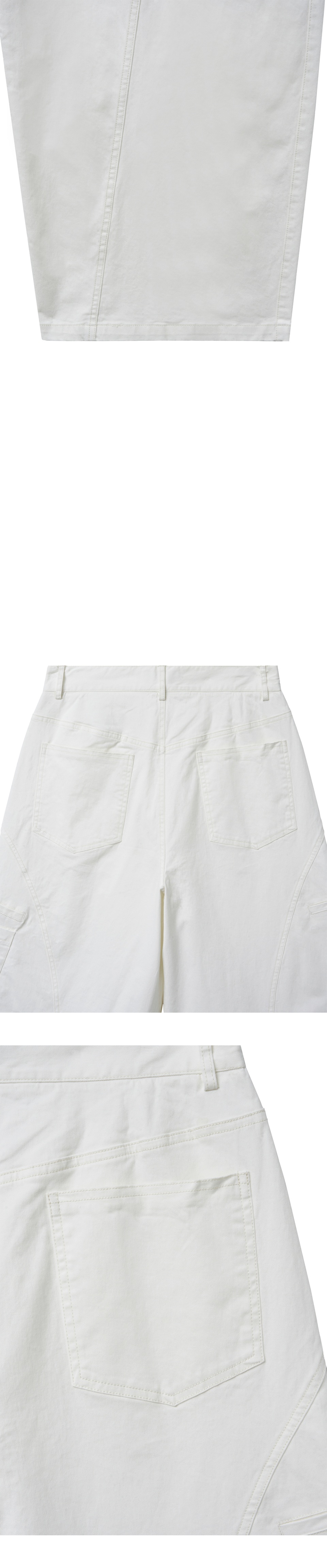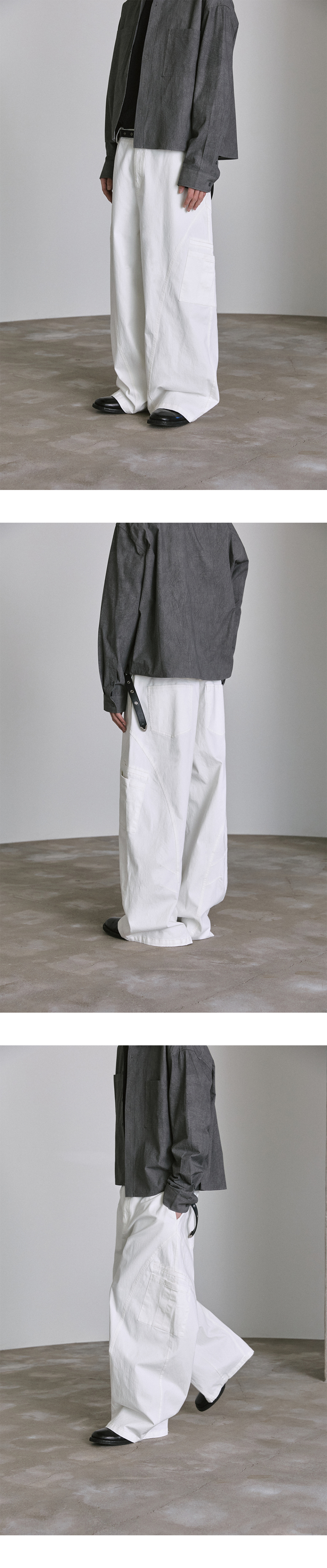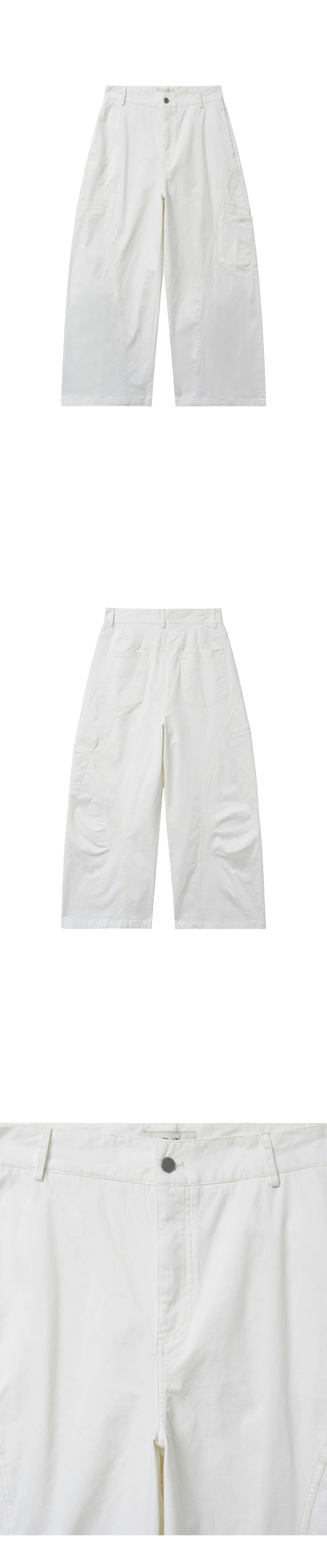 코튼 커브드 카고 와이드 팬츠 - 화이트