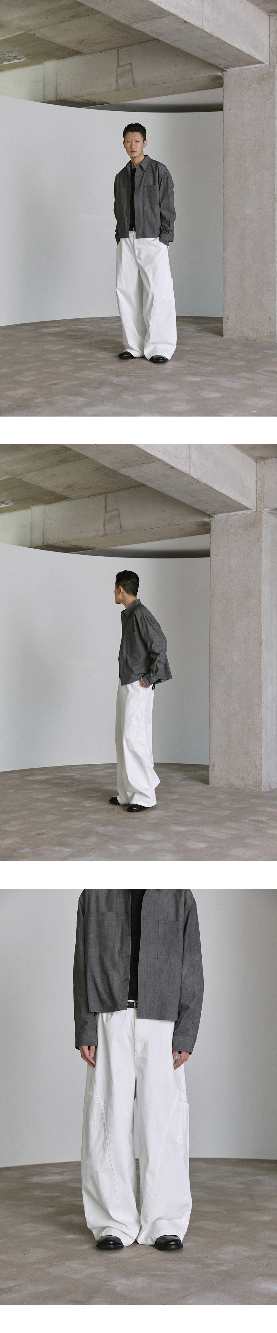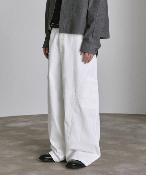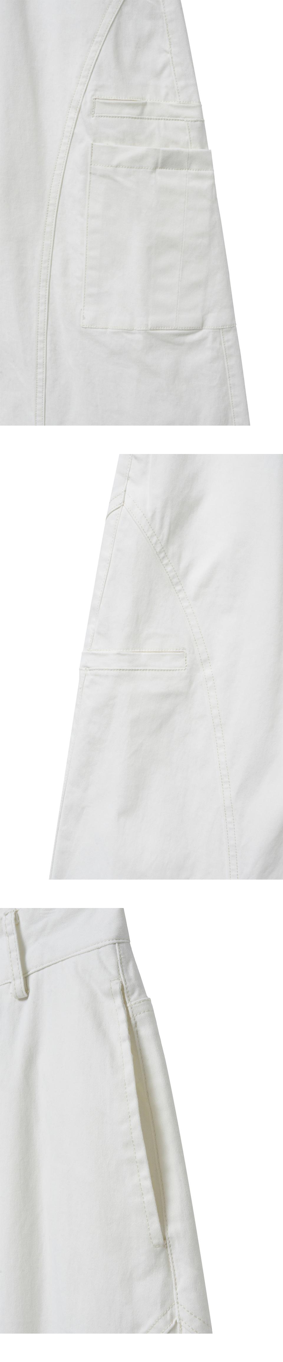 코튼 커브드 카고 와이드 팬츠 - 화이트