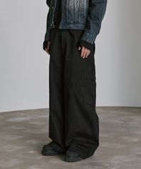 코튼 커브드 카고 와이드 팬츠 - 블랙