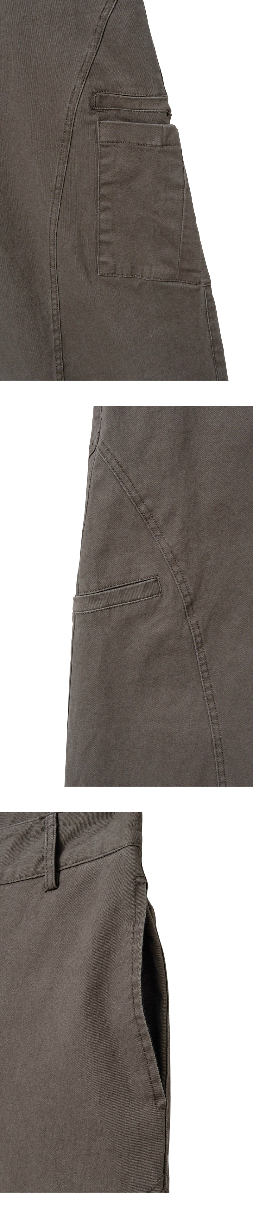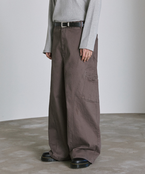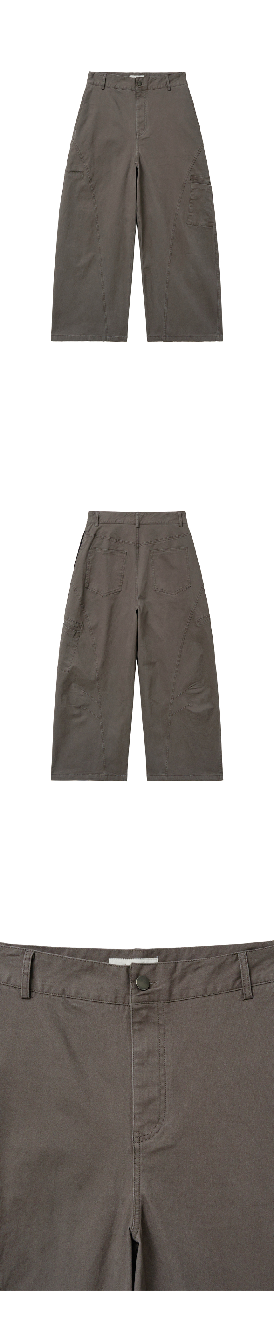 코튼 커브드 카고 와이드 팬츠 - 카키브라운