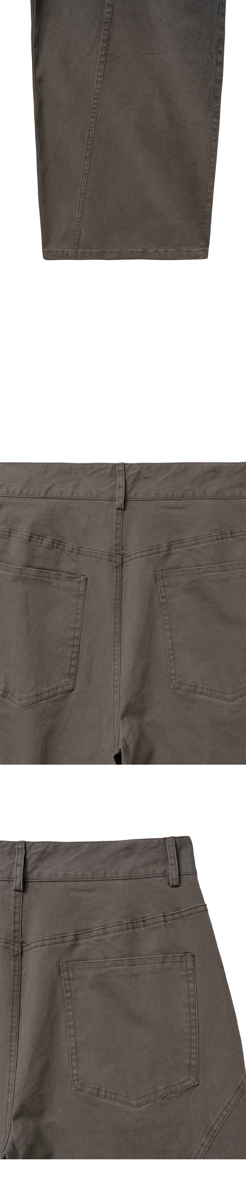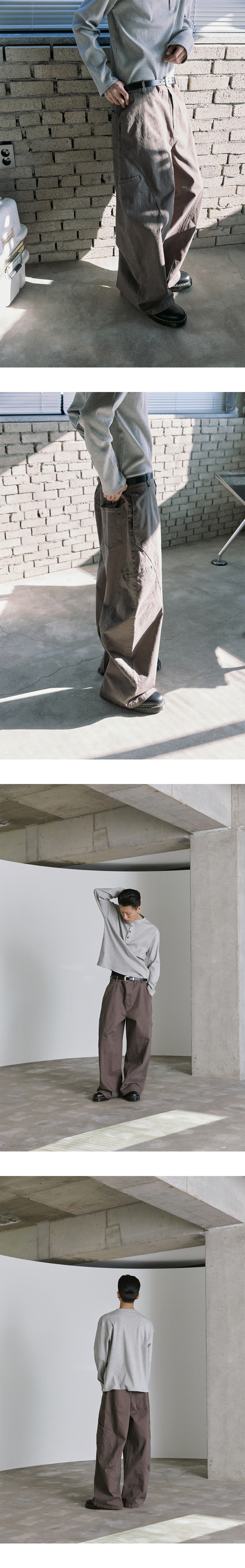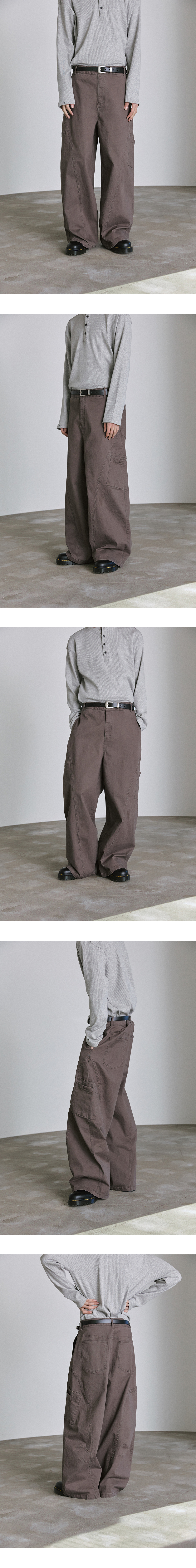 코튼 커브드 카고 와이드 팬츠 - 카키브라운