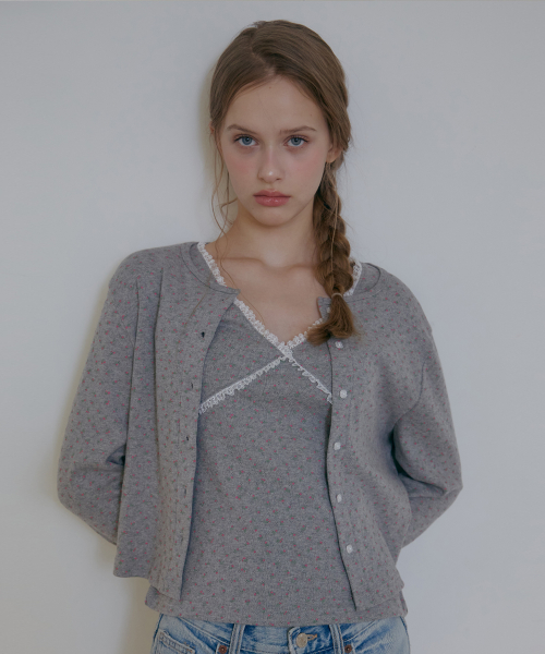 플라워 코튼 가디건-멜란지