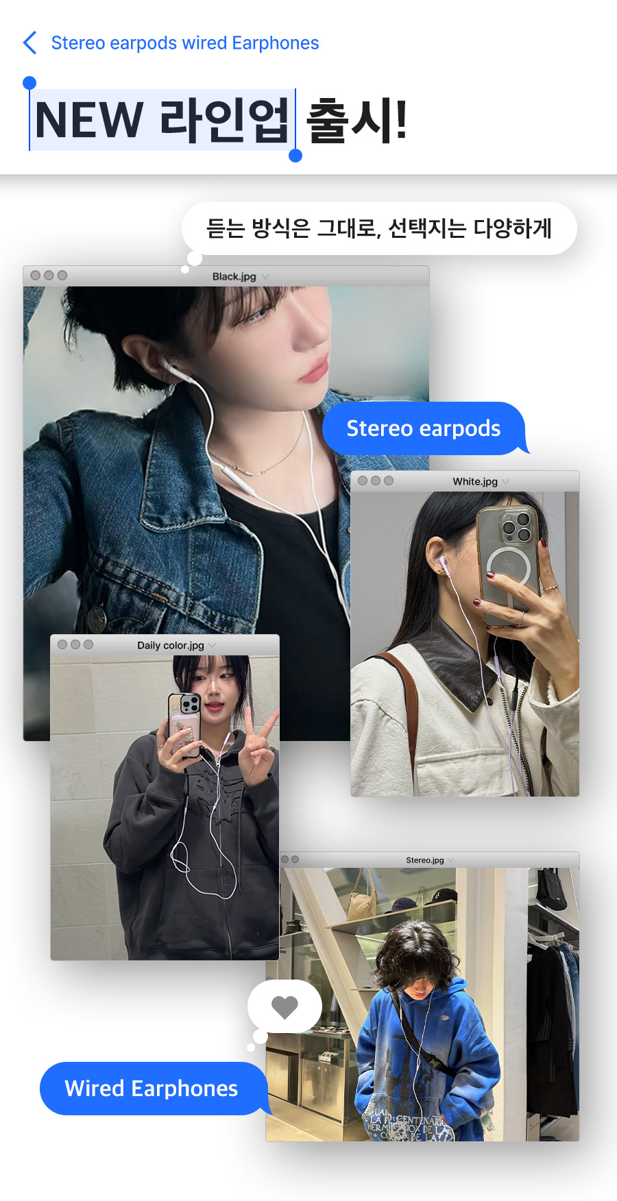 [2COLOR] 스테레오 이어팟 커널형 유선 이어폰 블랙 화이트 C타입 3.5mm 8핀
